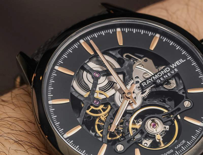 Freelancer RW1212 Skeleton 建立在 Raymond Weil 與瑞士機芯制造商 Sellita 的密切關(guān)系之上。該機芯由 Raymond Weil 設(shè)計,并由 Sellita 為他們定制。兩家公司的合作關(guān)系始于同一機芯的不同版本,該機芯沒有鏤空,但帶有“開放式表盤”和暴露在 6 點鐘位置的擺輪。除了可見調(diào)節(jié)系統(tǒng)的優(yōu)雅對稱位置外,另一個獨特的設(shè)計元素是擺輪上的橋。這不是絕對必要的,但在美學(xué)上是“陀飛輪式”的,我承認(rèn)結(jié)果看起來很有吸引力。廣告訊息廣告信息結(jié)束