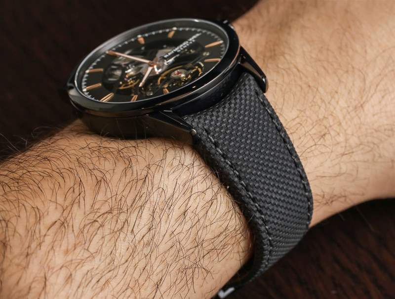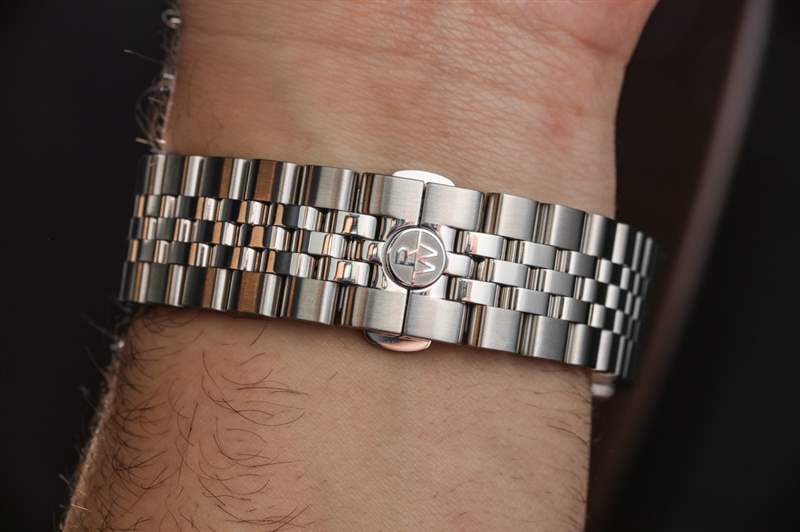 RW1212 機芯以 4Hz 自動運行,動力儲存 38 小時。自動轉(zhuǎn)子也經(jīng)過鏤空處理,以增強機制的開放感。一些機芯橋板經(jīng)過了迷人的拋光處理,總的來說,我認(rèn)為 Raymond Weil 和 Sellita 在執(zhí)行方面做得非常出色——尤其是在金錢方面。在我看來,表盤的平衡和對稱性以及整體易讀性贏得了這一點,因為它提供了足夠個性的日常佩戴,可以說“我不無聊”和“我喜歡發(fā)燒級手表”。