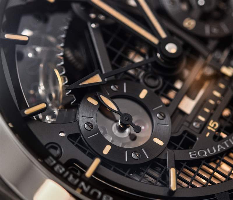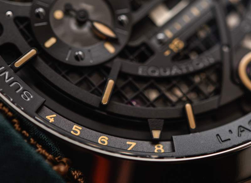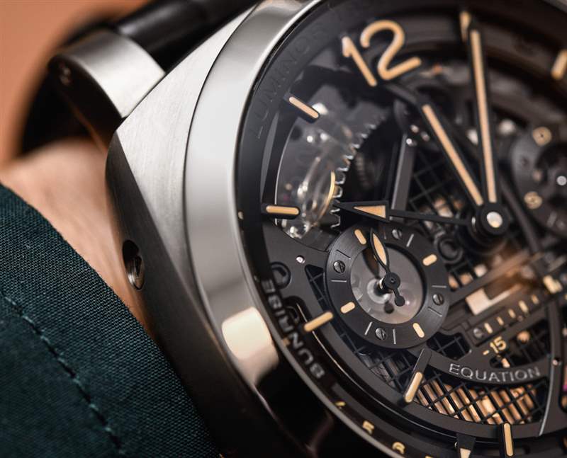 說到表盤,我們有更多的復雜性需要考慮,包括帶有小秒盤的時間、第二時區指針(12 小時格式)、月份指示器、日期(稍后會詳細介紹),正如我所說,時間方程和日出/日落指示器,都使用漂亮的線性刻度。重要的是要考慮到所有沛納海 L’Astronomo Luminor 1950 Tourbillon Moon Phases Equation Of Time GMT 手表都將按訂單生產。造成這種情況的最大原因之一是日出和日落指示器。這些功能需要針對世界的特定地區進行校準(只有具有這些復雜功能的數字手表才能針對不同的城市進行調整——換句話說,不同的經緯度坐標)。廣告訊息廣告信息結束