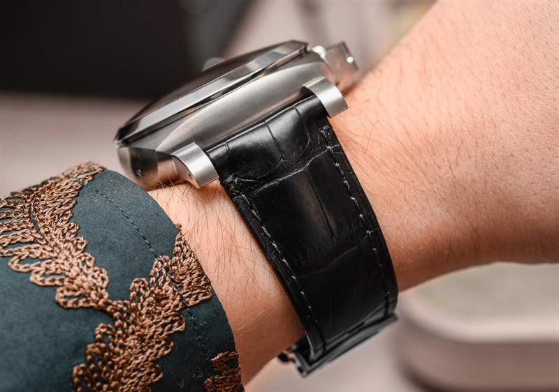 鑒于每個 L’Astronomo Luminor 1950 Tourbillon Moon Phases Equation Of Time GMT 時計都是“定制”的,沛納海還可以定制表殼材料、飾面,甚至表盤和指針顏色。如果您不使用 50 毫米寬的表殼,他們不能做的是讓這款大表更小。在這種形式中,表殼采用拋光和拉絲鈦金屬制成——看起來很可愛,質量上乘。該表殼還具有 100m 的防水深度——使其至少像沛納海手表一樣耐用。具有諷刺意味的是,甚至一些沛納海“運動手表”的防水深度也只有 30m(盡管該品牌的整個主題都是意大利潛水表)。