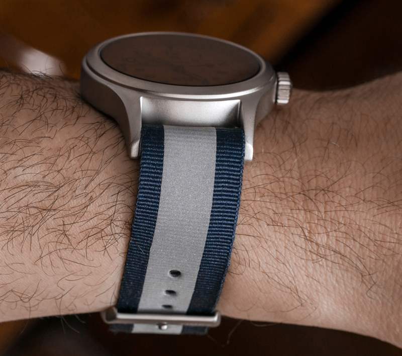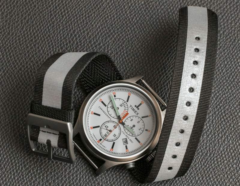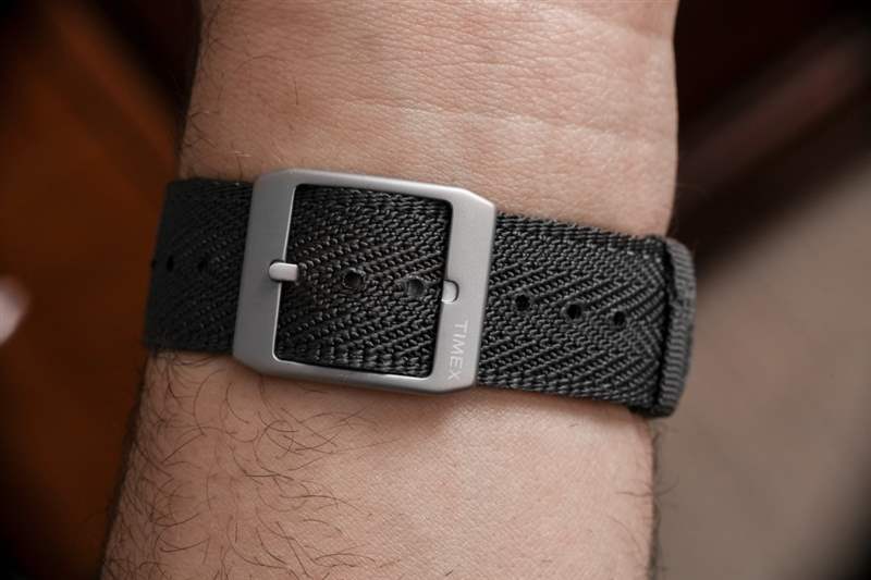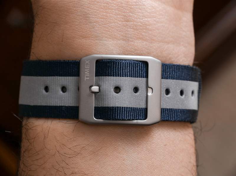 我記得 Timex 去年向我展示了這些表帶并為它們感到興奮。這條灰色表帶的一側是編織滌綸,帶有迷人的圖案。另一面——這就是我在圖片中的穿著方式——是尼龍的,中間有一條反光的“賽車條紋”。表帶由兩個不同的層制成,這本身就很有趣。反轉表帶實際上非常簡單,只需拉出表帶,翻轉它,然后將另一側編織成彈簧條。表帶最巧妙的設計特點之一是如何讓帶扣舌移動到任一側,具體取決于您使用的表帶的哪一側。我也喜歡它的可逆性非常謹慎——這意味著如果沒有人告訴你表帶設計為可逆的,你可能很容易錯過這個細節。
