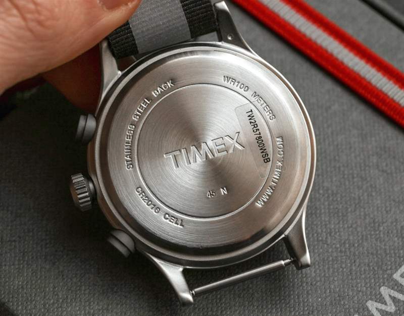 Metropolis Allied 采用相同風格的表殼,但尺寸為 40 毫米寬,奇怪的是只有 50 米的防水性。有人可能會認為,如果 Allied Chrono 有額外的推動器,其防水性能會更小,但在這種情況下,保留是正確的。如果在三針復古軍事外觀中防水性對您來說更重要,那么 Timex 還提供具有 100m 防水性的 Archive Collection Metropolis?Navi Ocean 型號(盡管采用 38mm 寬的表殼和旋轉潛水員式表圈) .?與計時碼表機芯不同的是,這款三針機芯的聲音稍大一些(雖然沒有標準的 Swatch 響亮),對于那些想要靜音時計的人來說,這一點很重要。