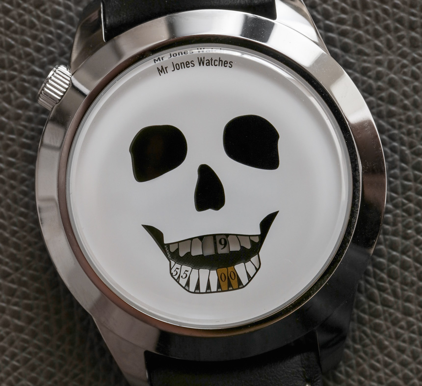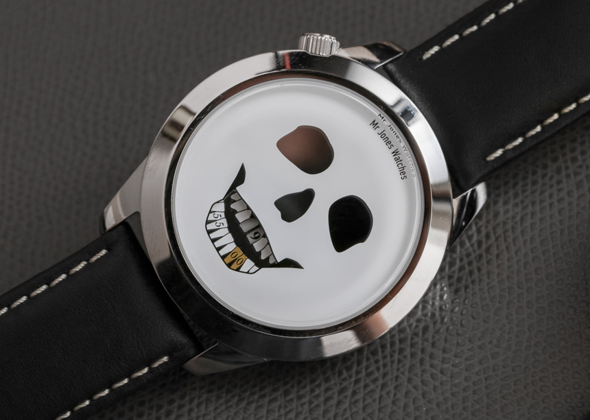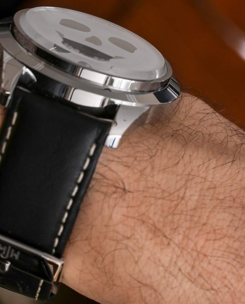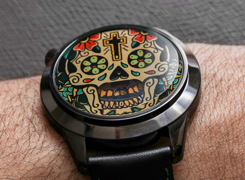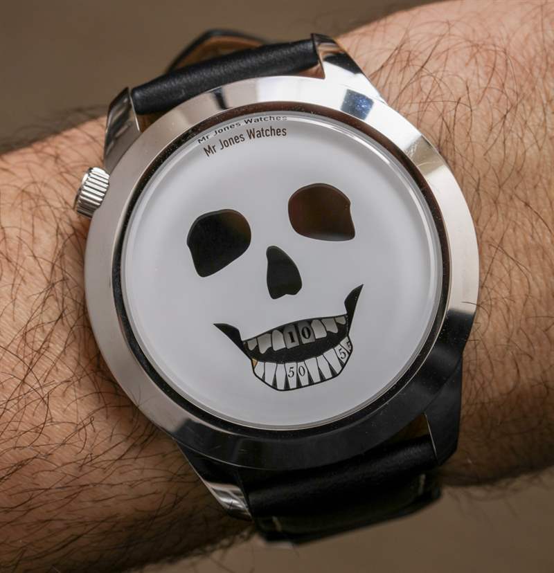 我記得在 2017 年早些時候,他在倫敦的品牌歡迎小店與 Jones Watches 先生的創(chuàng)始人 Crispin Jones 會面。我向他提到的一件事是制造更大版本的手表可能具有的價值。該品牌當(dāng)時最大的時計(jì)為 40 毫米寬——盡管他們的大多數(shù)流行款式仍然只采用該品牌的 37 毫米寬表殼。現(xiàn)在接近 2017 年底,Mr. Jones Watches 似乎接受了建議,45 毫米寬的 MJW The Last Laugh XL 和 Last Laugh Tattoo XL 就在這里。在手腕上,我覺得我之前的建議得到了驗(yàn)證,因?yàn)槲艺J(rèn)為這些 XL 手表以更大、更現(xiàn)代的方式捕捉了手表主題的吸引力,這將為新佩戴者打開品牌。
