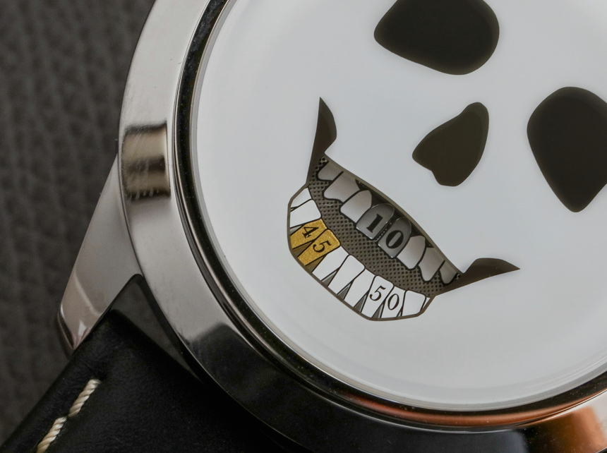 Last Laugh XL 是一款外觀更基本的表盤,只有白色背景下的骷髏特征。小細(xì)節(jié)很有趣,例如頭骨眼睛的鏡像。這是兩個型號中我最喜歡的,盡管我不能完全確定我為什么喜歡穿它。我同情“memento mori”(“基于骷髏”物品的哲學(xué)理由)的概念,盡管我傳統(tǒng)上不是“骷髏手表”佩戴者。我承認(rèn) The Last Laugh XL 在個性方面得分很高,而且也不覺得像一塊便宜的手表。