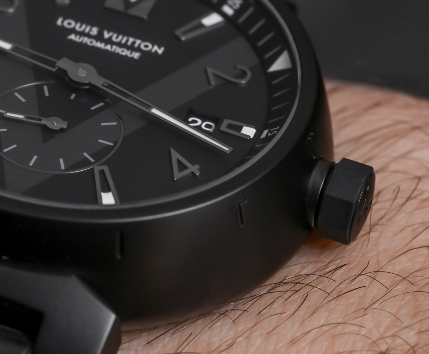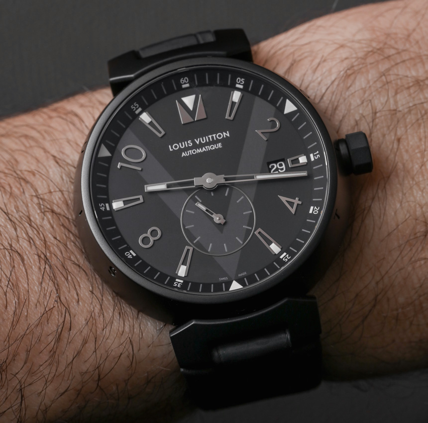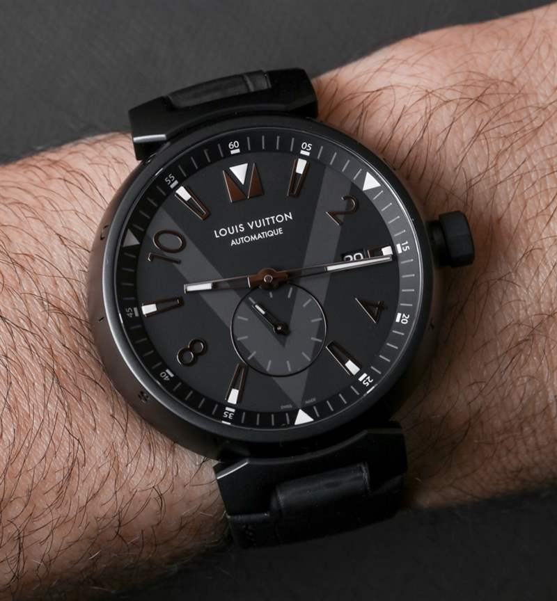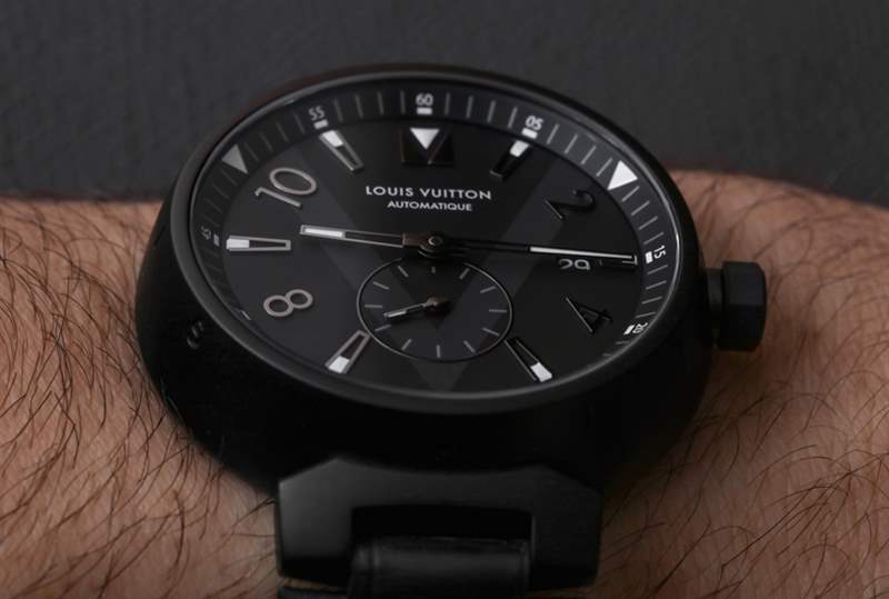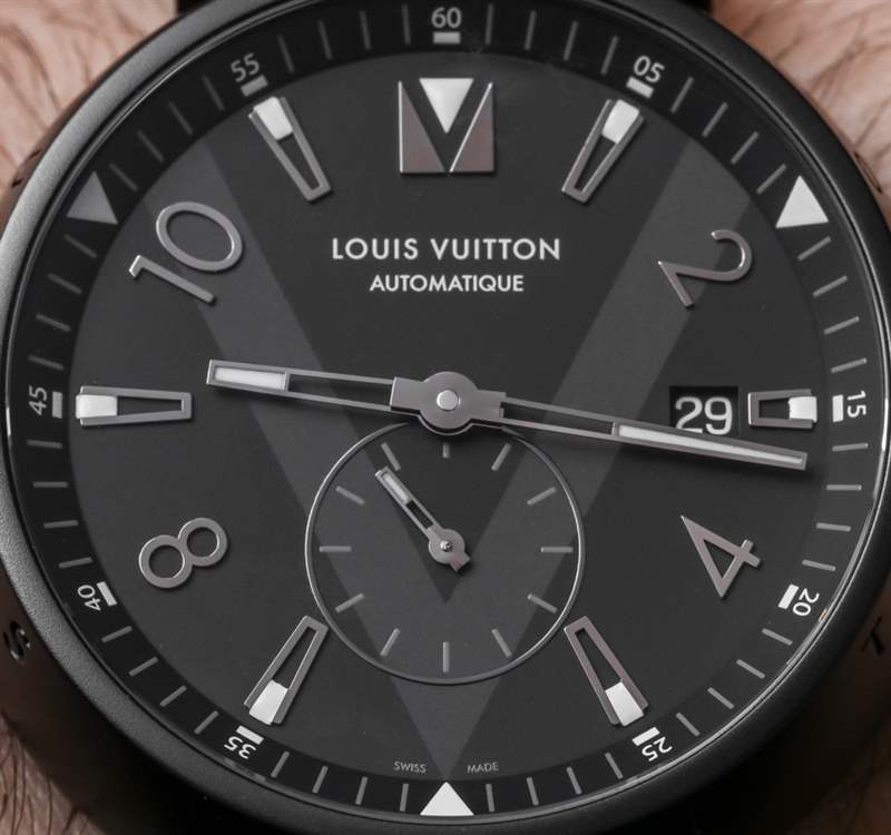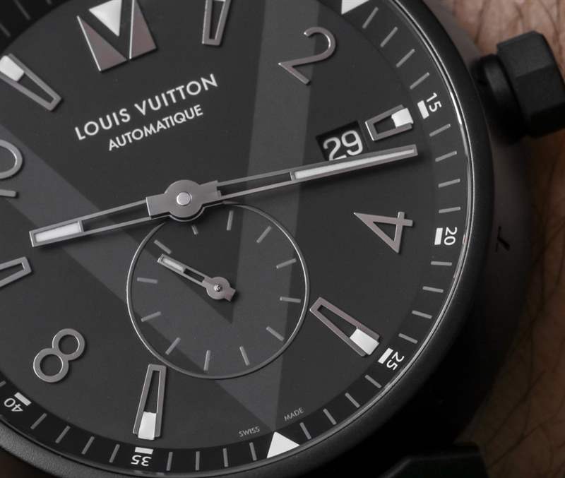Tambour All Black Petite Seconde 內(nèi)部是一個基本的瑞士 ETA 機(jī)芯,我相信是 ETA 2895 自動機(jī)芯。它是一款 4Hz 高級機(jī)芯,具有 42 小時動力儲存。手表隨附的表帶是迷人的啞光黑色鱷魚皮,如果您要求,路易威登會向您出售各種其他表帶。