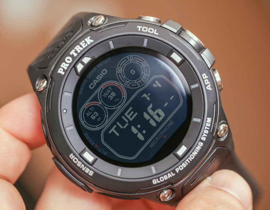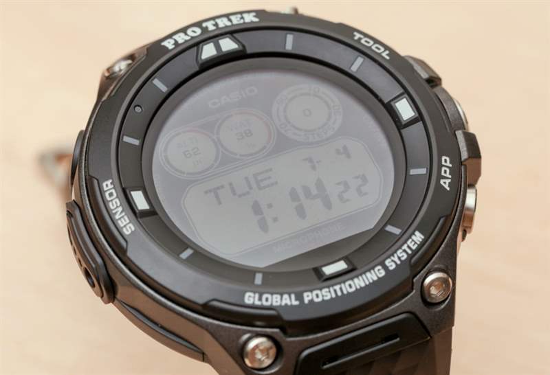 為了讓 WSD-F20 感覺更像 Pro Trek 手表,卡西歐重新設計了前擋板,我實際上同意與原始 WSD-F10 更簡單的表殼相比更具吸引力。維護的是手表的各種傳感器,例如指南針和氣壓計/高度計模塊以及添加的 GPS 模塊。這不僅使卡西歐 WSD-F20 更符合其他競爭性智能手表,而且有助于手表成為 Pro Trek 真正需要的實際探索手表。