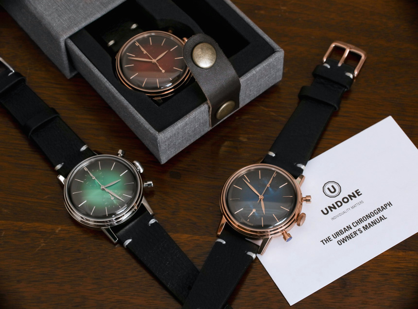 Undone 告訴我,這些表盤是由一家在中國以生產吉他而聞名的工廠生產的。一些吉他的琴身被賦予了類似的裝飾性漸變漆,這與用于表盤的技術相同。找到這樣的供應商對于能夠以低于標準 Undone Urban Vintage Chronograph 手表 100 美元的溢價(帶有額外的表帶)提供這些表盤至關重要。