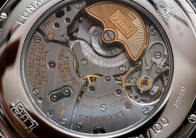 每個 LUC 機芯均由蕭邦內(nèi)部生產(chǎn),包括精加工(金屬部件的裝飾),在我看來,這可以與業(yè)內(nèi)公認的最佳機芯相媲美。通過表殼后部仔細觀察內(nèi)部制造的 caliber LUC 96.13-L 自動機芯,可以發(fā)現(xiàn)我們對手表愛好者在我們實際佩戴的時計中尋求的關(guān)注、美麗的經(jīng)典線條、出色的表面處理以及對實用性的關(guān)注.