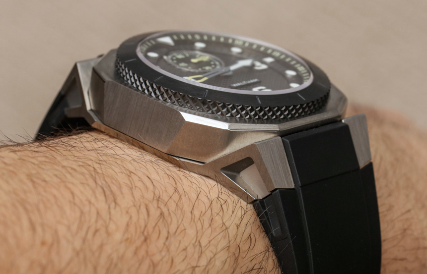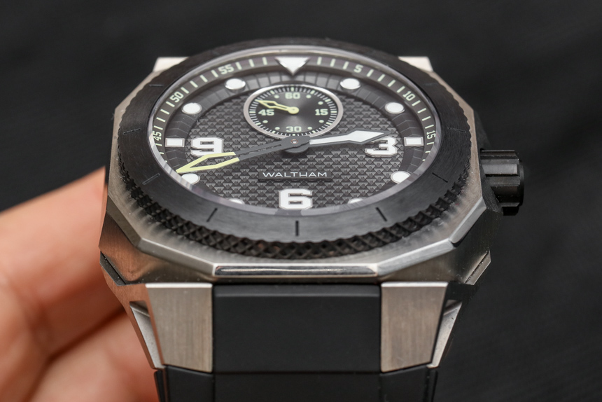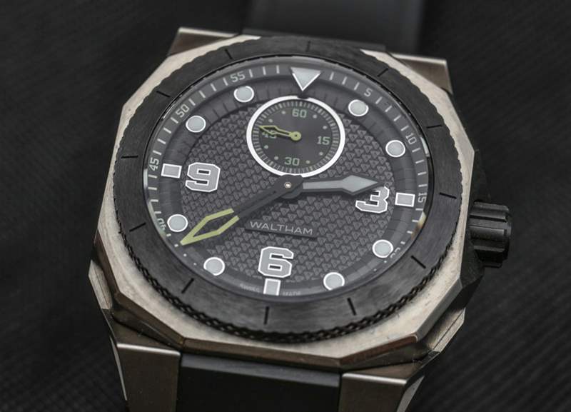 沃爾瑟姆不再是一家美國公司,但這些手表的靈感來自沃爾瑟姆為美國軍方制造的老式軍用時(shí)鐘。還有一個(gè)不那么微妙的嘗試,讓 Waltham XA 系列具有“德克薩斯大小”的感覺。Waltham 還生產(chǎn)尺寸略小的 AeroNaval AN-01,但 XA(包括已審查的 XA Pure)具有 47 毫米寬的鈦金屬表殼——由于其更堅(jiān)固的表殼設(shè)計(jì),感覺更大。表殼和一體式表耳的鋒利幾何線條看起來既有趣又有趣。5級鈦金屬表殼經(jīng)過精心加工,表圈周圍是一塊厚厚的黑色陶瓷,頂部經(jīng)過拉絲處理,側(cè)面有滾花紋理。如果 XA 系列缺少任何東西,那肯定不是有趣的案例細(xì)節(jié)。