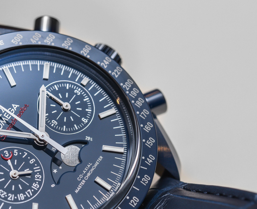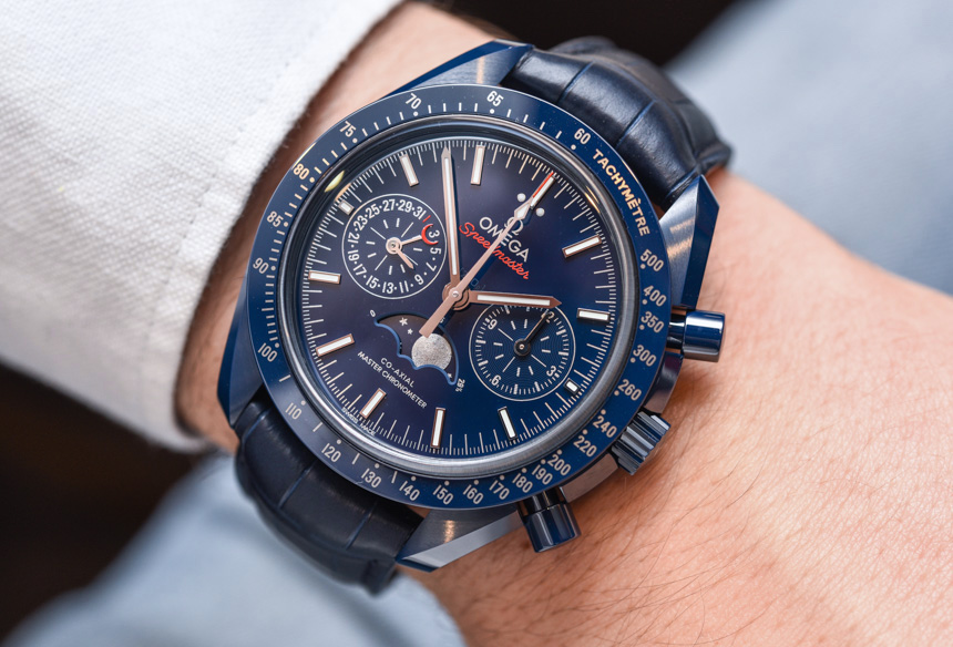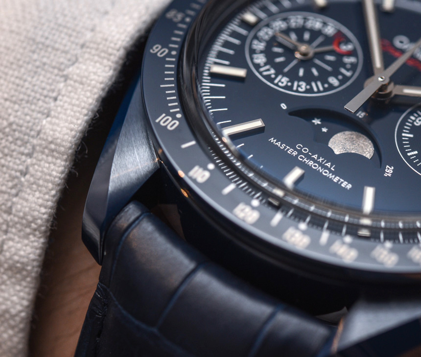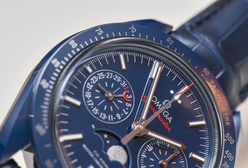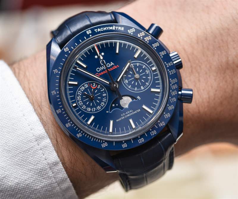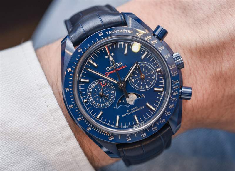 這款新的陶瓷超霸系列不是專注于配備內(nèi)部制造的 9900 機(jī)芯的標(biāo)準(zhǔn) Speedmaster Co-Axial Master Chronometer Chronograph,而是基于Omega Speedmaster Co-Axial Chronometer Chronograph Moonphase 和我擁有的內(nèi)部制造的 9904 機(jī)芯在這里完成了 aBlogtoWatch 評(píng)論。Blue Side Of The Moon 或多或少與我評(píng)測(cè)過(guò)的藍(lán)色 Speedmaster Moonphase 手表相同,但帶有優(yōu)雅、豐富的藍(lán)色陶瓷表殼。它確實(shí)是迄今為止最藍(lán)的超霸!這對(duì)于色調(diào)的粉絲來(lái)說(shuō)是件好事,在過(guò)去的幾年里,從運(yùn)動(dòng)到正裝手表以及介于兩者之間的所有東西,它都非常受歡迎。廣告訊息廣告信息結(jié)束