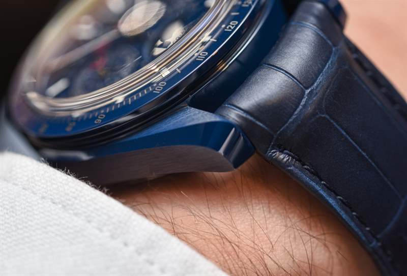44.25 毫米寬的表殼大而舒適。11.7 毫米厚,??得益于盒式藍(lán)寶石水晶,手感高大。歐米茄在使陶瓷看起來(lái)像拋光金屬方面做得非常出色。訣竅是在表殼上復(fù)制對(duì)比鮮明的拋光和拉絲飾面——就像金屬表殼一樣。這就是為什么原始的月球暗面超霸如此受歡迎的原因,以及為什么現(xiàn)在藍(lán)色它看起來(lái)同樣可愛(ài)。廣告訊息廣告信息結(jié)束