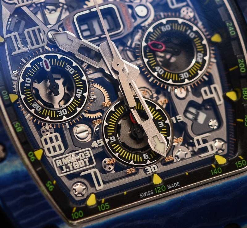 話雖如此,它恰好特別好。也許是因為藍色作為顏色現在特別流行,或者是因為 RM 11 系列已經過時了。從手表收藏家的角度來看,這款手表的特別之處在于 RM11 機芯繼續脫穎而出。4 赫茲、55 小時動力儲存自動裝置將計時碼表和年歷(月份和大日期指示器)結合在一起。盡管這種組合看起來很實用,但很少有其他手表品牌試圖提供競爭產品。