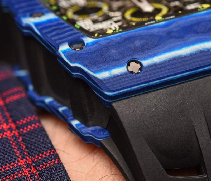 對于 Richard Mille 來說,這是一個嘗試顏色并進一步開發傳奇 RM 11 手表系列的絕佳機會,這有助于使該品牌在地圖上名聲大噪。在其先進的形式中,RM 11 具有相同的有用機芯,但采用石英 TPT 制成的奇特表殼,這是一種在瑞士生產并從高性能車輛借來的材料。這種材料是由數百片二氧化硅組成的致密層,每層只有幾微米厚。藍色只是裝飾性的,但如果沒有充滿活力的色彩,它就不會是 Richard Mille。廣告訊息廣告信息結束