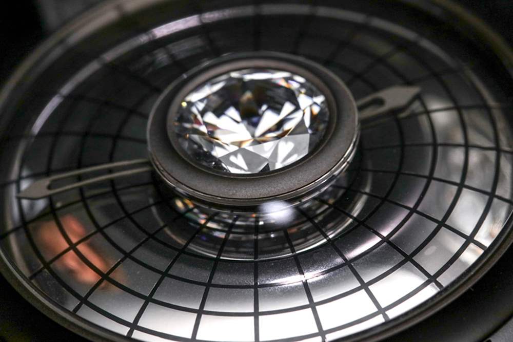 將鉆石鑲嵌在藍寶石水晶本身中的最重要的事情之一是能夠保持基本的防水水平(30 米)。這樣做在概念上非常簡單,但確實需要一些特殊的開發。本質上,藍寶石水晶里面有一個孔,孔周圍是墊圈,然后是鉆石。據我了解,挑戰在于以一種能夠將極其寶貴的石頭安全放置的方式來開發所有這些。因此,您可以看到在中央鑲嵌的鉆石和藍寶石水晶的其余部分之間有一個表圈。廣告訊息廣告信息結束