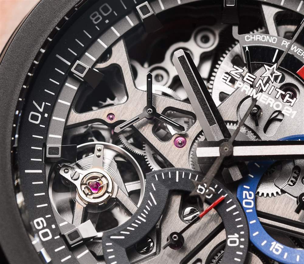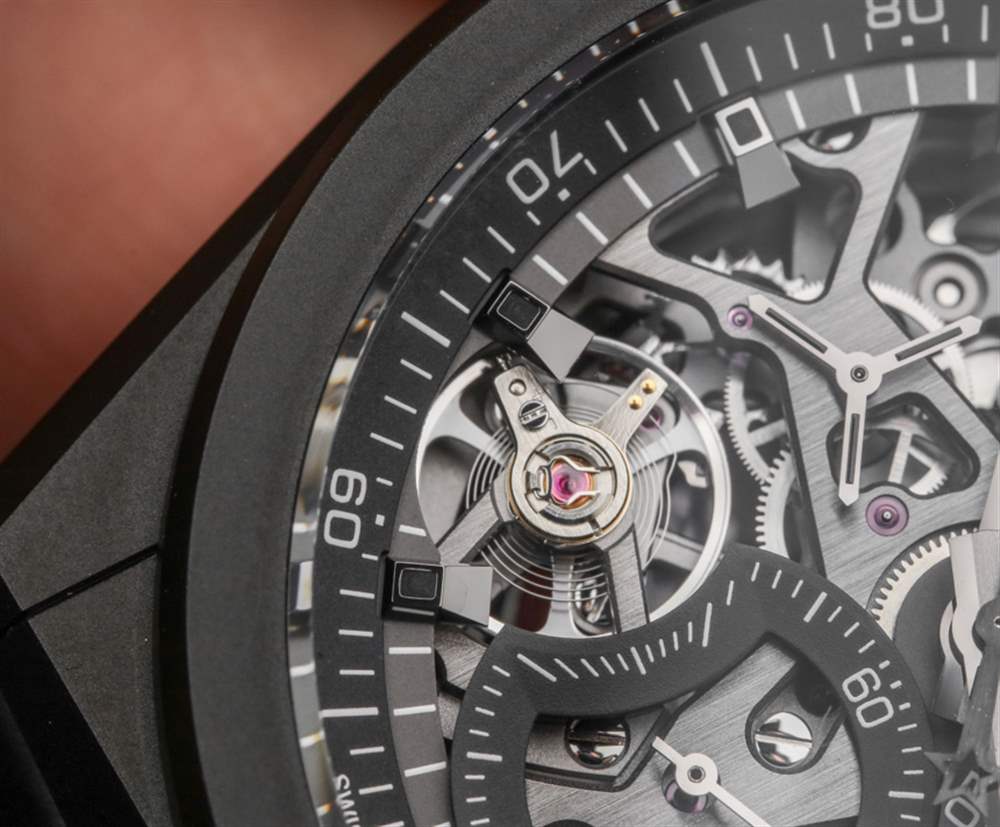 當然,除了 El Primero 21 中的機芯結構之外,還有一件事是新的,那就是在專用于計時復雜功能的獨特調節(jié)機構中用于平衡輪的特殊碳材料(咳咳,碳基碳納米管材料)運動。