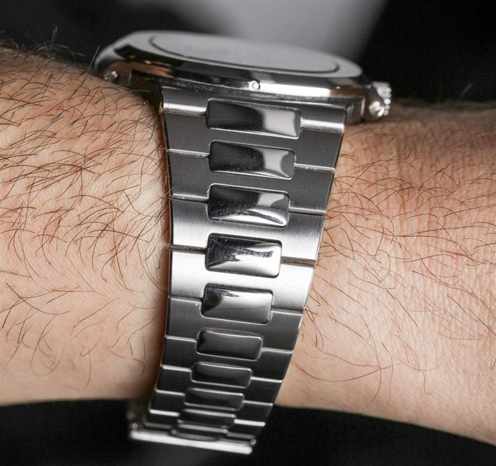 我想談?wù)動(dòng)绊懴蘖堪?5711/1P 百達(dá)翡麗 Nautilus 推出的一些非常重要的事情。百達(dá)翡麗分享的這款手表的圖片使它看起來好像表盤上的“40 1976-2016”文字很大而且很突兀。事實(shí)上,在這些圖像中它看起來非常丑陋。然而,在現(xiàn)實(shí)中,這個(gè)文本非常微妙,在大多數(shù)光照條件下更難看到。大部分情況下,在佩戴百達(dá)翡麗鸚鵡螺鉑金 40 周年紀(jì)念腕表時(shí),并不能真正看到 40 周年紀(jì)念文字。這一點(diǎn)非常重要,因?yàn)槲艺J(rèn)為很多人都認(rèn)為這是一個(gè)非常大的設(shè)計(jì)錯(cuò)誤——正如它出現(xiàn)在百達(dá)翡麗自己的營銷形象中一樣。教訓(xùn) – 再一次 – 是我們應(yīng)該始終對手表進(jìn)行最終保留,直到我們親眼看到它。