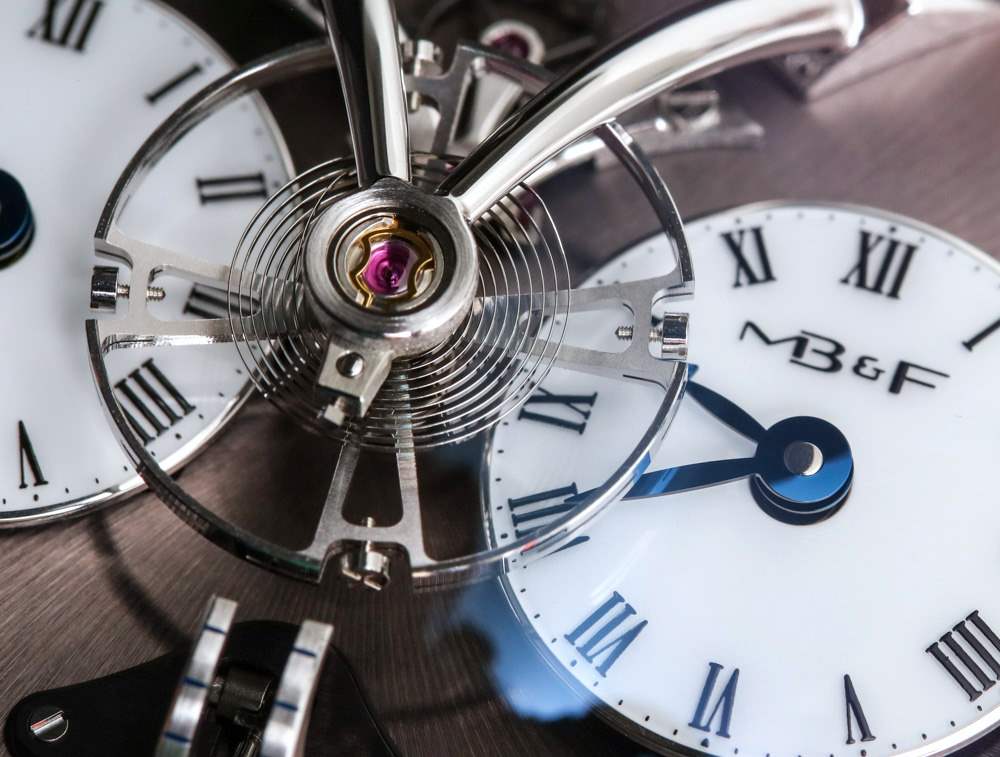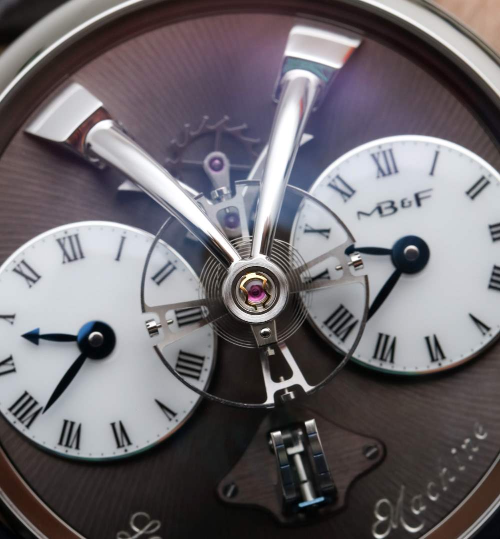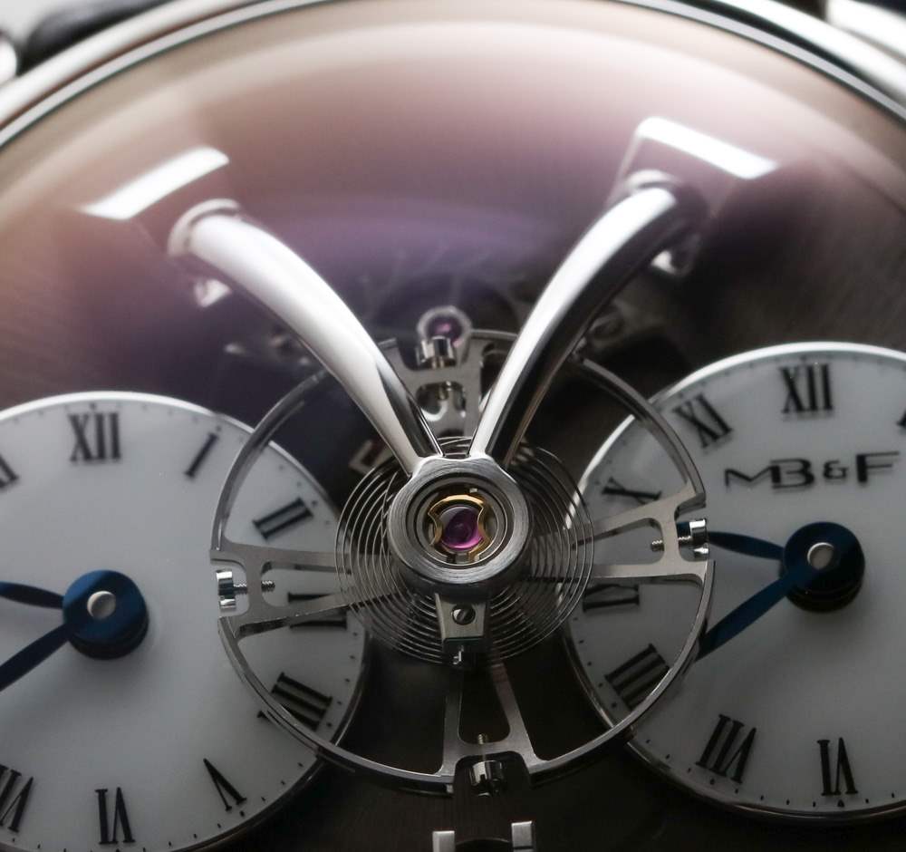MB&F LM1 一直以來(lái)我最喜歡的功能之一是“垂直”線性動(dòng)力儲(chǔ)備指示器。與表盤上的傳統(tǒng)指針不同,小臂作為動(dòng)力儲(chǔ)存指示器在表盤上垂直上下移動(dòng)。時(shí)間通過兩個(gè)表盤顯示。每個(gè)都或多或少是獨(dú)立的,可以根據(jù)您的喜好使用位于表殼兩側(cè)的兩個(gè)專用表冠之一設(shè)置為分鐘。它是一款非常方便的兩時(shí)區(qū)時(shí)計(jì)。