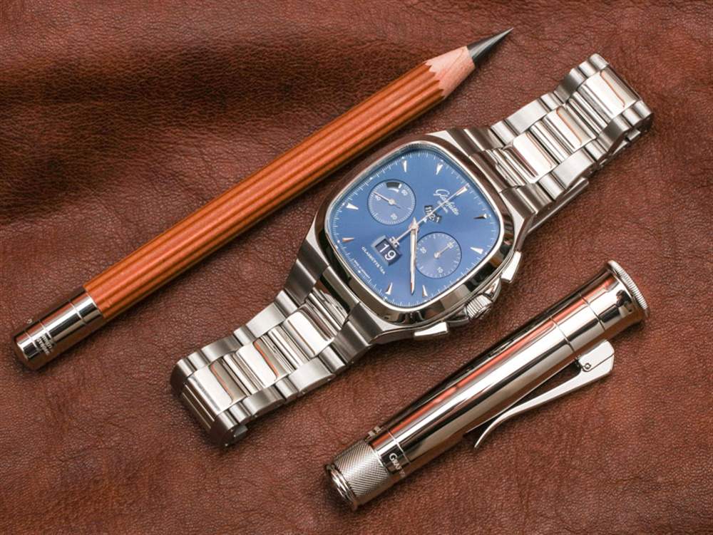 我記得當(dāng)品牌在 2011 年發(fā)布該系列時(shí),我第一次將Glashütte Original Seventies 手表戴在了我的手腕上。在試用之前,我曾在圖片中看到過這款手表,并且很驚喜地發(fā)現(xiàn),佩戴它時(shí)我比圖片所暗示的更喜歡它。像許多時(shí)計(jì)一樣,這是一種恰好在手腕上時(shí)會(huì)栩栩如生的作品,而不是在營銷圖像的真空中觀看。我認(rèn)為這是因?yàn)閹бr墊的方形表殼搭配精心制作的錐形表鏈,特別適合人手和手臂的有機(jī)曲線——這使得設(shè)計(jì)能夠通過美學(xué)和耐磨性來推銷自己。如果您對(duì)另一個(gè)鏡頭感到好奇,我們之前?在這里查看了非計(jì)時(shí)版本的 Seventies Panorama Date 手表。2014 年,Glashütte Original 格拉蘇蒂原創(chuàng)推出了 Seventies Chronograph Panorama Date 腕表系列,擴(kuò)展了 Seventies 系列。廣告訊息廣告信息結(jié)束