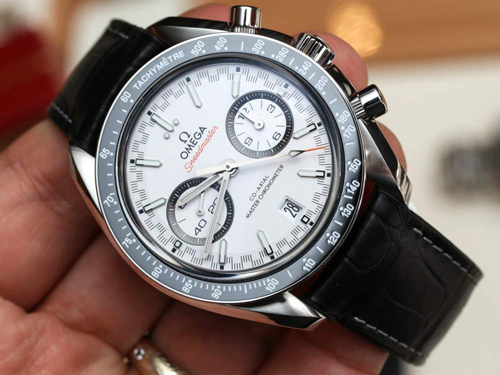 歐米茄 Speedmaster Racing Co-Axial Master Chronometer 型號包括 329.33.44.51.04.001 7,800 瑞士法郎(皮革表帶白色表盤)、329.30.44.51.04.001 7,900 瑞士法郎(鋼表鏈白色表盤)、329.33.44.51 .01.001 7,800 瑞士法郎(皮革表帶黑色表盤),329.30.44.51.01.001 7,900 瑞士法郎(鋼表鏈黑色表盤),329.32.44.51.06.001 7,800 瑞士法郎 (棕色皮革表帶灰色表盤),329.30 .44.51.06.001 7,900 瑞士法郎(鋼表帶灰色表盤),329.32.44.51.01.001 7,900 瑞士法郎(黑色表盤,皮革表帶橙色指針),329.30.44.51.01.0027,900 瑞士法郎(黑色表盤,鋼表鏈上的橙色指針),329.23.44.51.06.001 為10,300 瑞士法郎(灰色表盤,雙色精鋼和 18k Sedna 金皮表帶),329.53.44.51.03.001 為22,750 瑞士法郎法郎(藍色表盤,全 18k Sedna 金表殼)。