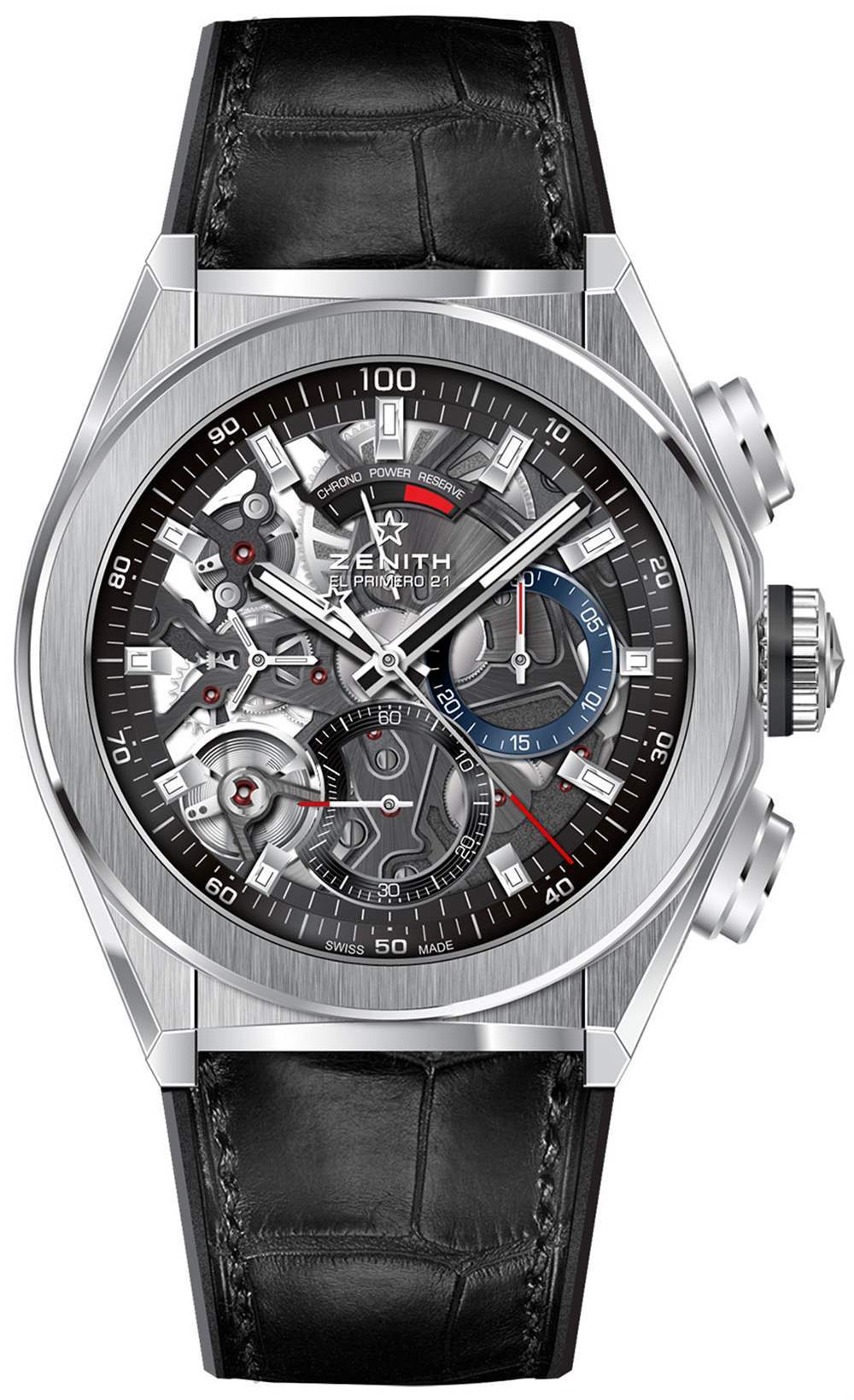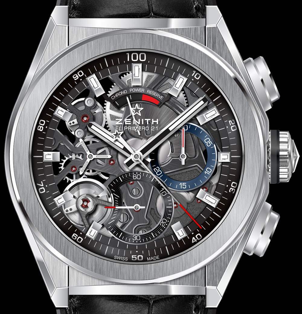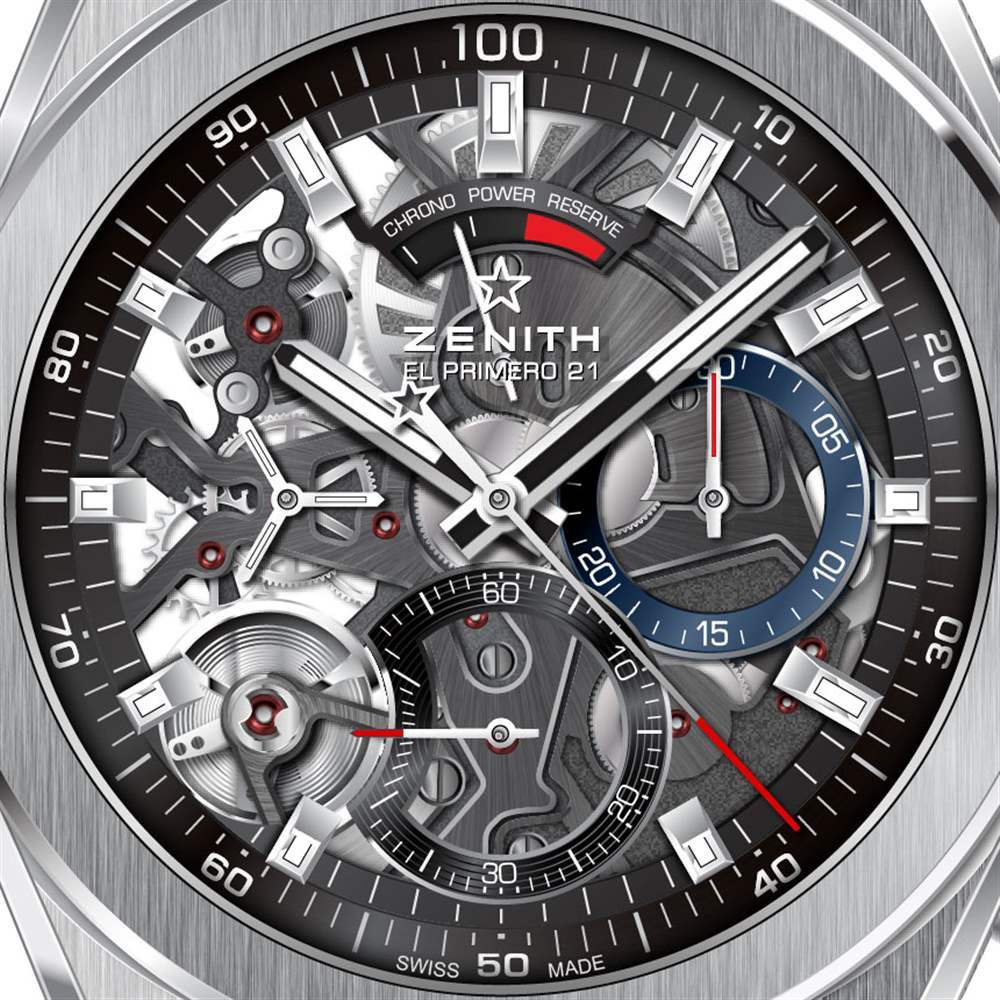 Zenith Defy El Primero 21 在“Biver 運動手表 DNA”方面確實擁有棱角分明的邊緣與更大的圓形形狀、表殼和表帶之間的無縫結合、突出的表冠和按鈕,以及完全鏤空的表盤。后一個組件可能是區(qū)分機械表與……好吧,那些非機械表的更大戰(zhàn)略的關鍵部分。這種想法可能是,當有人花很多錢購買機械表來購買機芯時,讓他們直觀地看到機芯(在表殼的正面和背面)并不是一個糟糕的主意。