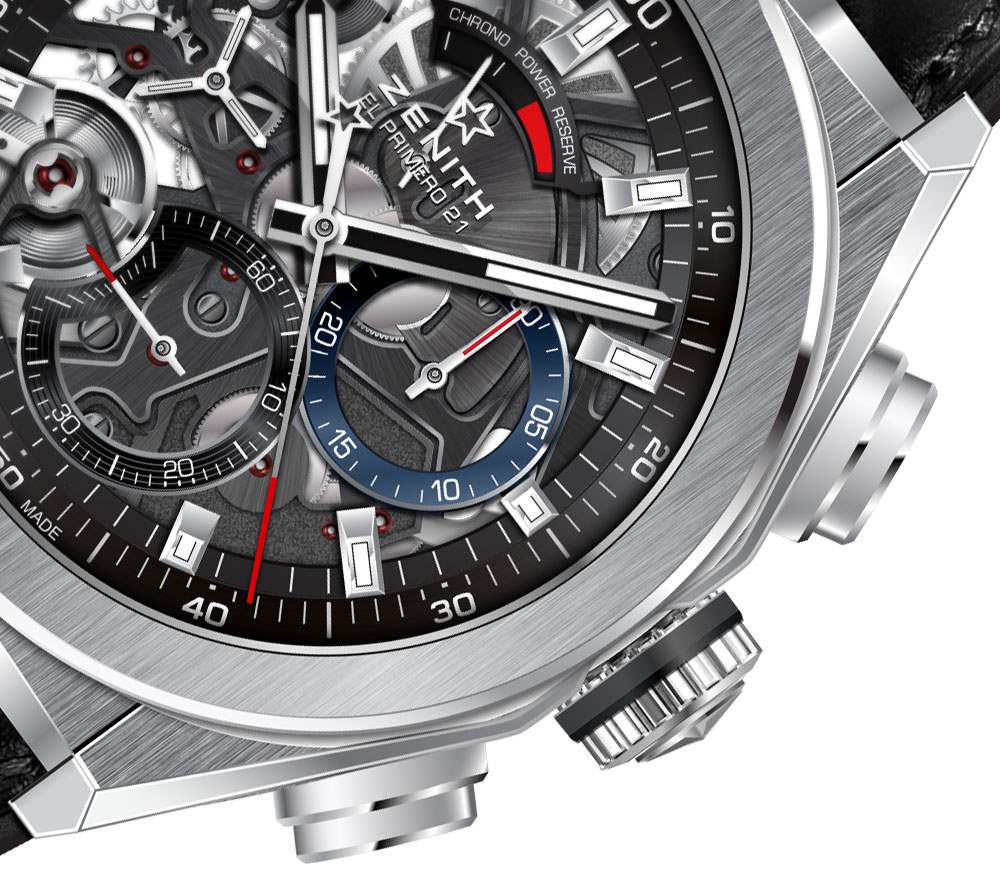 2017 年真力時 Defy El Primero 21 的三個版本包括帶有鏤空表盤的天然鈦金屬表殼(編號 95.9000.9004/78.R582),帶有鏤空表盤的黑色涂層鈦金屬表殼(編號 24.9000.9004/78. R582),以及非鏤空表盤和天然鈦金屬表殼型號(參考 95.9001.9004/01.R582)。后一種模型將是模型中更清醒、更經(jīng)典的模型,但運動看起來很有趣,骨架化的現(xiàn)代視覺效果可能會吸引更多人。
