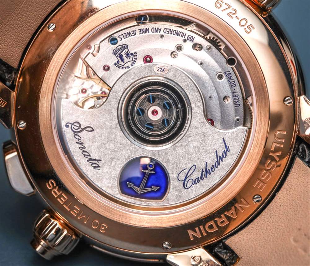 這種有效融合價(jià)值觀的一個(gè)很好的例子是更新后的奏鳴曲,我覺得它總是有潛力,盡管它的視覺設(shè)計(jì)從來沒有讓它對(duì)那些尋求更精致設(shè)計(jì)的人產(chǎn)生吸引力。Ulysse Nardin Classic Sonata 內(nèi)部是一款出色的自制機(jī)芯,名為 UN-67 機(jī)芯。該機(jī)芯具有一系列有用的技術(shù)特征,例如硅擒縱機(jī)構(gòu)和由硅制成的調(diào)節(jié)系統(tǒng)中的其他組件,例如獲得專利的游絲。自動(dòng)機(jī)芯以 4 赫茲(28,800 次/小時(shí))的頻率運(yùn)行,動(dòng)力儲(chǔ)存為 42 小時(shí)。