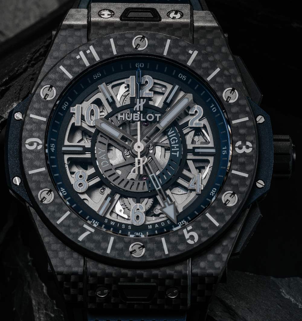 風格方面,Hublot Big Bang UNICO GMT 有點來自 Hubot 的新鮮感,該系列首次推出鈦或碳纖維表殼選項。表圈上的標記讓人想起許多傳統的 24 小時式 GMT 手表,但正如您所見,宇舶表的設計師們玩弄了這個概念,只是提供了兩部分的時標,所以阿拉伯數字時標沒有出現在主表盤放在表圈上,看起來很有趣。當然,表盤并不是典型的宇舶 Big Bang,但在指針和時標方面,卻擁有宇舶 Big Bang 45 的大部分獨特元素。箭頭式第二時區指針是新的,但與宇舶 King Power Oceanographic 潛水表上的秒針相似——適合那些真正對宇舶深度瑣事感興趣的人。