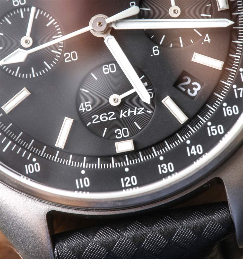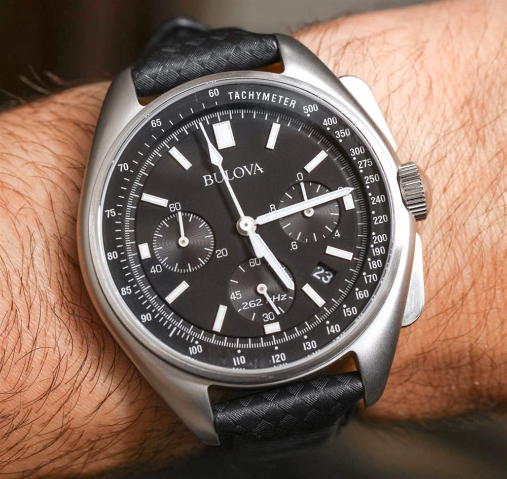 Bulova 歸日本西鐵城集團所有,雖然西鐵城手表不共享它們的機芯,但您可以確保 Bulova 特別版月球計時手表內部的“高性能”石英機芯質量上乘。查看手表的表盤,您會在小秒盤上看到一個“262 kHz”的名稱標簽。對于那些不熟悉寶路華時計系列的人來說,這應該是第一次暗示手表內部有一些特別之處。