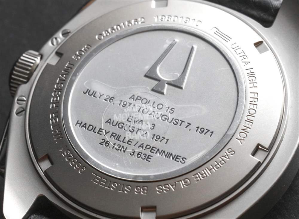 Bulova 在過去幾年中改變了對他們有趣的石英機芯的稱呼,其性能優于標準石英機芯。這始于“Precisionist”這個名字,后來演變成“UHF”(“超高頻”),現在只是“高性能石英”。Moon Chronograph 手表使用“UHF”名稱,手表背面帶有“Ultra High Frequency”標簽,旁邊是一個三管石英諧振器的小圖像——以防你想知道那是什么。廣告訊息廣告信息結束