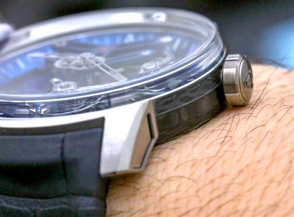 在手腕上,碳纖維、藍(lán)寶石水晶和鈦金屬表殼既輕巧又合身,佩戴舒適。附在表殼上的是一條黑色“隱形”鱷魚(yú)皮表帶,帶有鈦扣。整個(gè)設(shè)計(jì)感覺(jué)就像是現(xiàn)代和傳統(tǒng)元素的成功結(jié)合,具有許多視覺(jué)效果,但具有永恒的吸引力。我很樂(lè)意每天佩戴其中一款 Angelus U20 Ultra-Skeleton Tourbillon 手表,如果只是為了接受佩戴它可能會(huì)受到的所有關(guān)注。這是我不介意觀看書(shū)呆子對(duì)話的手表類(lèi)型。