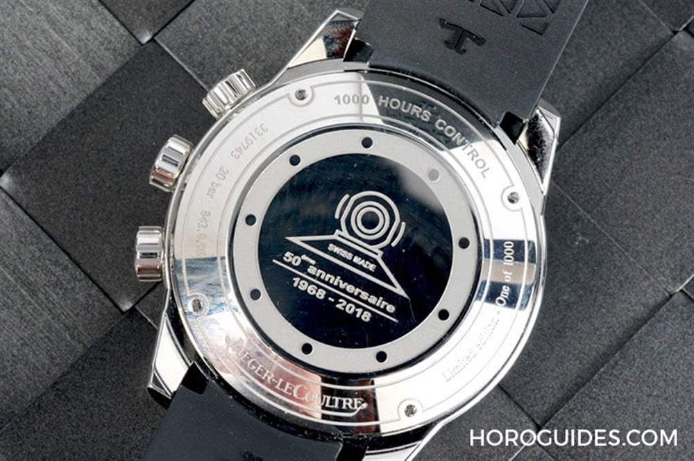 此次五款中唯一的限量表款,發行1,000只,經典三表冠設計就是前面所提在IG搶先露出的預告,分別用于設定鬧鈴(上)、設定旋轉內表圈(中)、設定時間(下)。搭配音簧報時的積家956型機芯,與1950年代設計的首款自動響鬧腕表機芯一脈相承。42mm的尺寸也與過去呼應,搭配全新的橡膠表帶和折疊式表扣,防水深度為200米。
