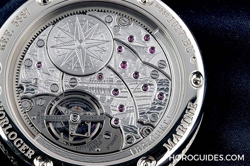 表背像手上鏈機(jī)芯一樣完整的露出機(jī)芯夾板,手工鐫刻的船艦圖案極為復(fù)雜精細(xì)。