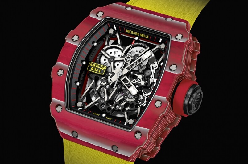 RM35-02的特別之處,是Richard Mille為拿度身訂造的表款,可以承受巨大的沖擊力之余,亦由于用上了NTPT的超輕物料,可以配上極搶眼的黃色表帶,價(jià)錢約在104萬港元,但是卻是全球都在搶的腕表!
