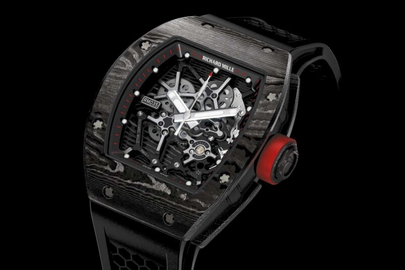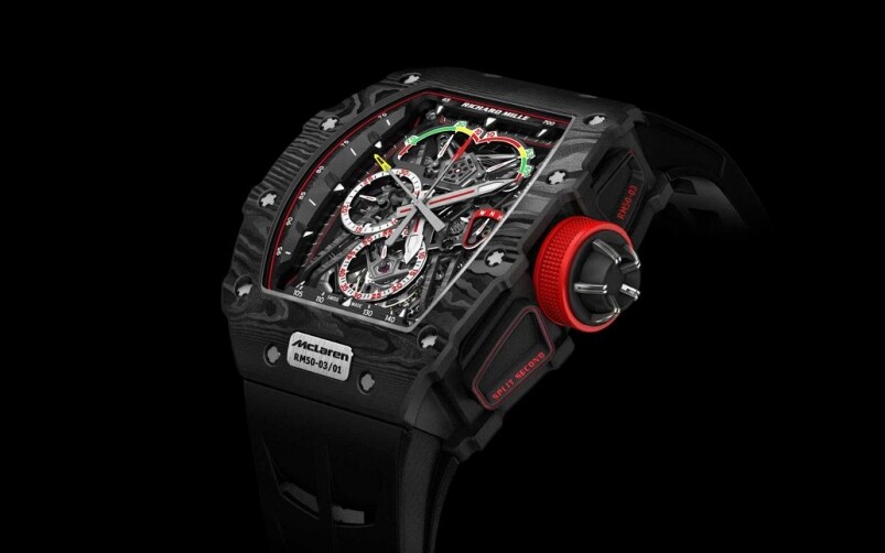 例如是今年年頭的SIHH 2017之上,他們帶來了史上最輕只有40克的機(jī)械表,RM 50-03 McLaren F1雙秒追針陀飛輪計(jì)時(shí)碼表。輕得過份,幾乎仿如無物,卻價(jià)值100萬瑞士法郎,背后是因?yàn)楸須そY(jié)合了鈦合金和他們的TPT?碳纖維,還將另一種全新材料Graph TPT?引入鐘表制造中,所以可以如此輕如此嚇人。