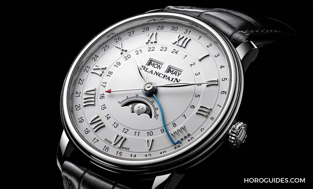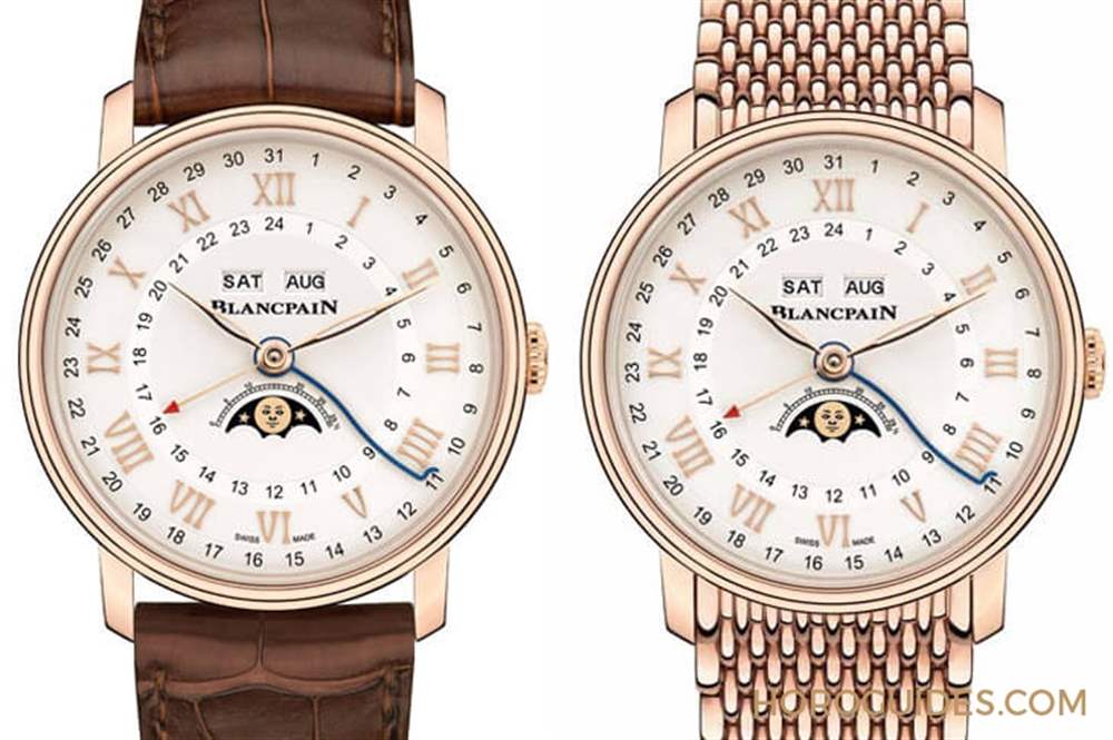 寶鉑Villeret系列近幾年延伸產(chǎn)品價位帶,在數(shù)款復(fù)雜功能推出不銹鋼款式,自GMT年歷、日期星期腕表之后,2002年首度亮相的兩地時間全日歷腕表,’18年也將推出不銹鋼材質(zhì),并且搭配寶鉑專利的表耳隱藏式調(diào)校裝置。