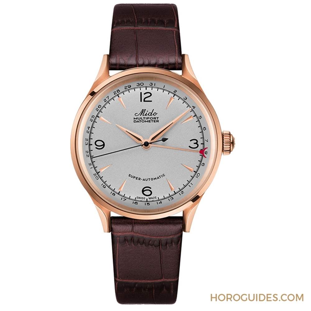 1934年發表的Multifort系列可謂瑞士制表中最悠久的系列之一,而擅于將全球地標于腕表設計的美度,則體現了澳洲雪梨港灣大橋的細節于Multifort系列。而此次這款Datometer主要搭配銀色磨砂面盤與黑色轉印的時標,重現1939年Multifort原創腕表風貌,并且以鮮紅彎月形尖端的纖細指針,詮釋當時表款的中央日歷指針。同時搭配圓弧式的藍寶石水晶表鏡,更增添復古風情,不過表徑倒是符合現代尺寸的40mm,與搭載80小時動力儲存的Caliber 80自動上鏈機芯,以玫瑰金PVD不銹鋼表殼全球限量1918只,另于秋季推出18K黃金版本,全球限量100只。