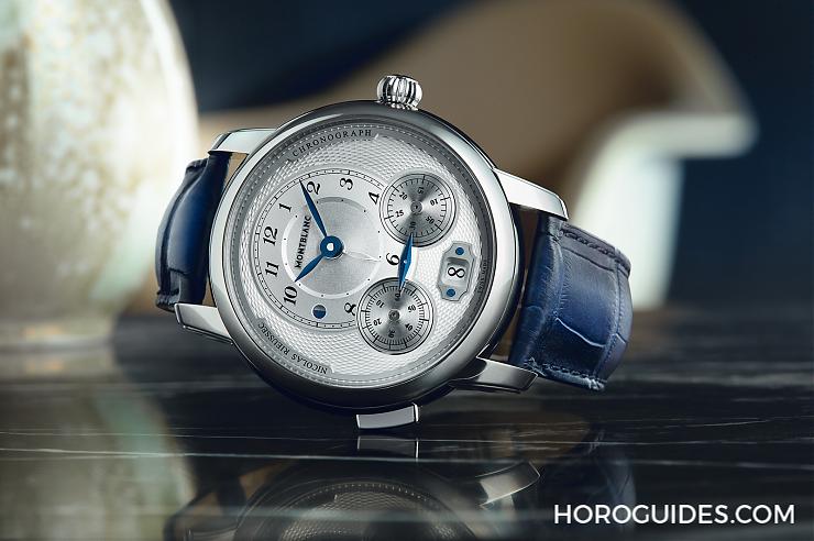 同樣限量僅有100只的1858系列懷表,表徑60mm以鈦金屬打造,表盤采用天然藍線石打造,懷表打開除了可見搭載的MB M16.24單按把計時機芯,另一面可見內建的指南針,而這只1858懷表與去年的TimeWalker系列拉力賽計時懷表一樣能從懷表變成座鐘,利用底座可將懷表放置桌上,同時也可以變身為腕表。