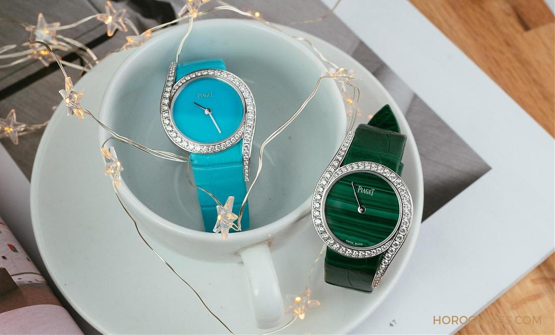 不只Altiplano超薄表令人驚艷,PIAGET 伯爵旗下的Limelight Gala表款更是女表的經典代表作之一,從極簡的黑白配色到璀璨亮晶晶的滿鉆設計,2018年伯爵運用色彩的潮流,把鮮明、大膽的顏色融入表盤,以深邃綠的孔雀石與藍綠色的綠松石將經典的Limelight Gala變化成更率性、感性的設計,兩款表戴上手,絕對是回頭率百分百!