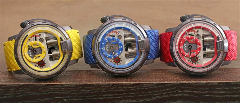 HYT H1 拼色手表每款僅限 10 件,但并不適合所有人。該系列由紅色參考 148-TT-80-NF-FR、黃色參考 148-TT-80-NF-FY 和藍色參考 148-TT-80-NF-FB 組成。