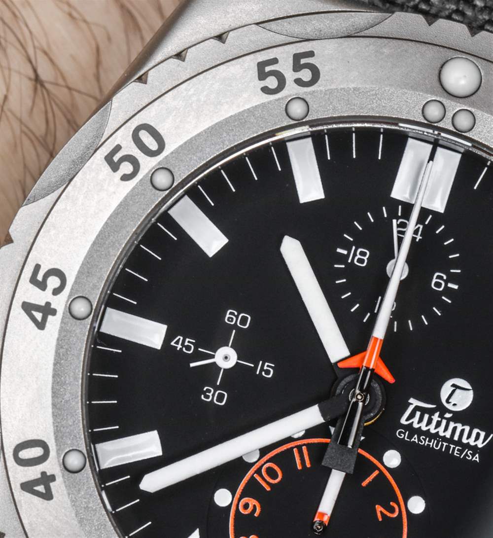 我討論過的其他具有這種特殊且非常有用的表盤布局的手表還包括德國Sinn EZM 10(在這里查看)和瑞士寶璣 Type XXI(在這里動手)。請注意,這兩款手表也有完全自制的機芯(寶璣)或經(jīng)過大量修改的基礎機芯(Sinn)。雖然所有產(chǎn)品都很可愛且清晰易讀,但 Tutima 竭盡全力確保 M2 系列手表上的計時碼表易于使用和閱讀。