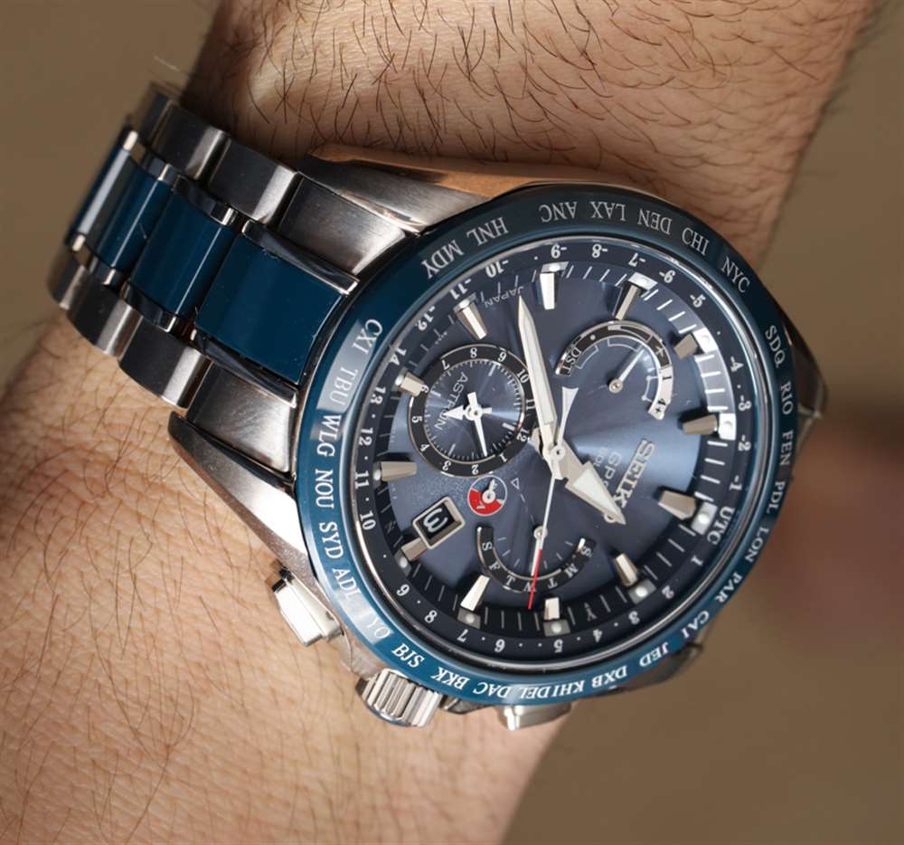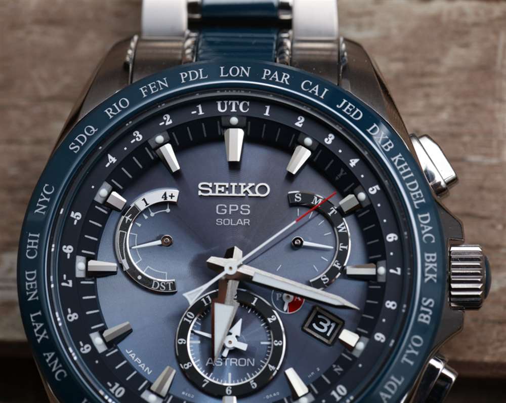 雖然手表的表盤只有星期幾和日期,但日歷是永久性的,根據精工的說法,8X53 機芯直到 2100 年(我們都死了)才需要調整日歷。這款手表具有 40 個不同時區的內置數據,從一個區域到另一個區域的更改很容易,因為秒指示器指針使用 UTC 加號或減號刻度或參考城市刻度將自身重新定位為時區選擇器 –在時區選擇模式下。雖然我確實喜歡將計時碼表作為旅行手表的一部分,但精工 Astron GPS 太陽能雙時區幾乎擁有其他所有功能。因此,如果您可以在沒有計時碼表的情況下生活,那么這就是一款非常堅固的旅行手表,甚至可以作為日常佩戴。它確實有幫助,但是,