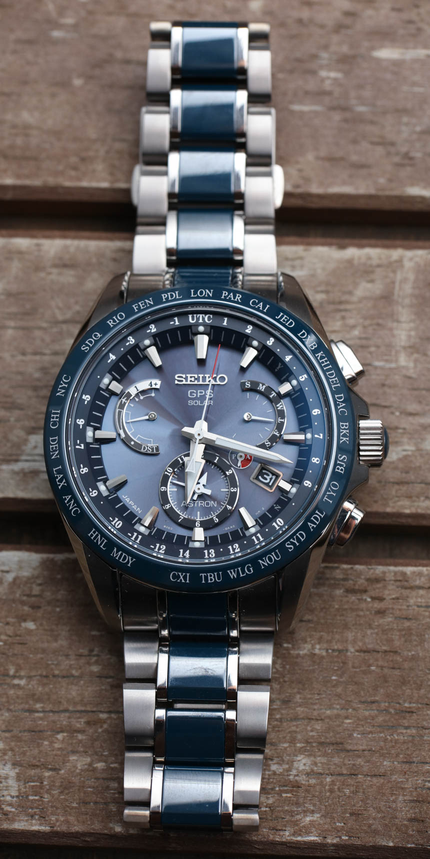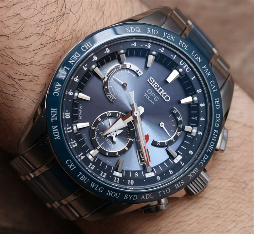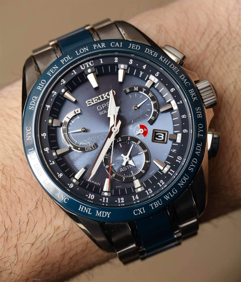 Seiko Astron GPS Solar Dual Time SSE043 戴在手腕上既迷人又現代,但又不失優雅。雖然它本質上是一款技術友好的小工具手表,但它確實具有一些性感魅力。精工喜歡在機場和類似地點為這些手表做廣告,但我認為他們需要盡可能多地關注像這樣的手表是對一個人風格的贊美。實際上,我從沒想過我會像這款手表一樣喜歡藍色和鈦金屬手表。精工生產了一系列采用鋼和鈦等材料的 Astron “8X”雙時區型號,但我覺得鈦才是真正的選擇。不僅因為它的重量更輕,還因為精工使用了比普通鈦更耐刮擦的處理鈦(精工稱之為“超硬涂層”)。此外,表鏈上的表圈和中心鏈節采用陶瓷制成,具有高度抗刮擦性。表盤上方是鍍增透膜的藍寶石水晶。從鋼款到鈦款,它的價格要高出大約 600 美元(零售價)——我強烈推薦它。
