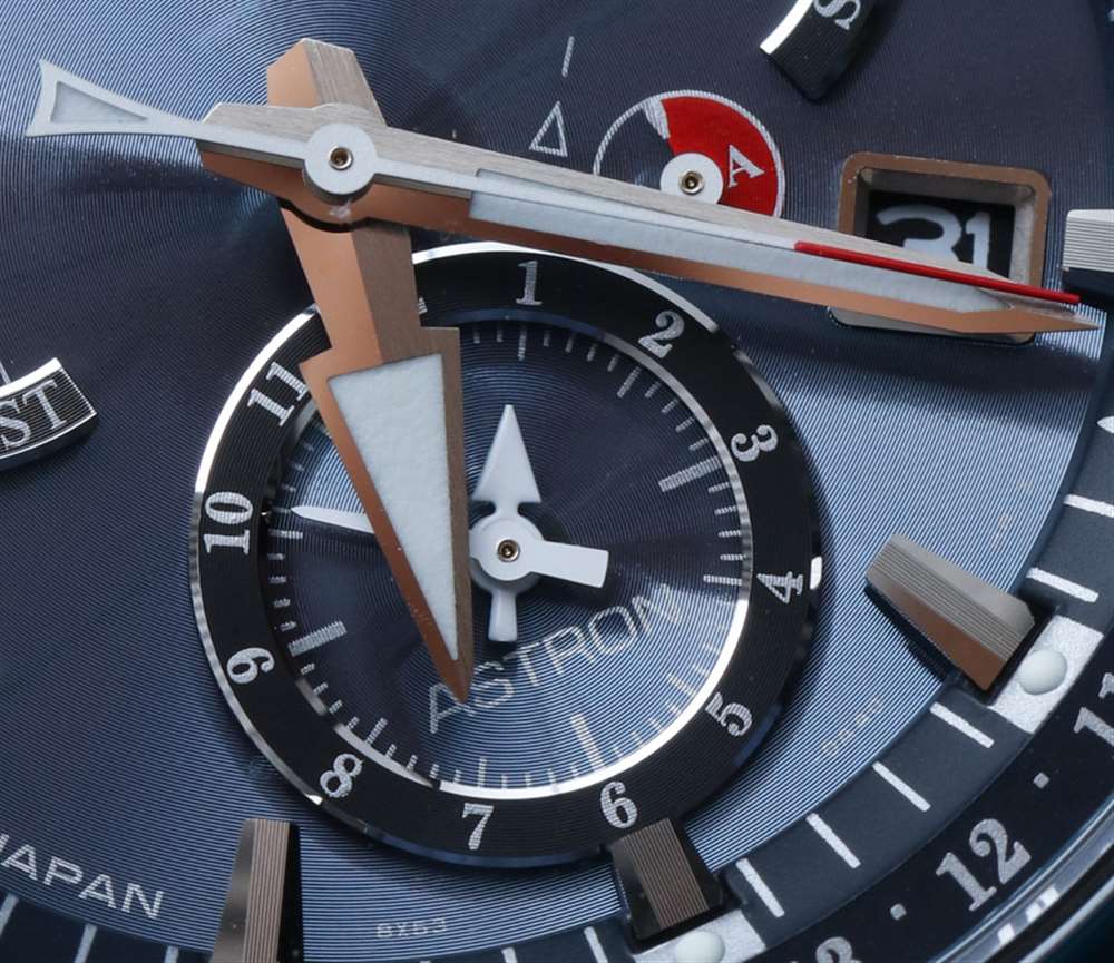 與 Astron 計時碼表一樣,精工 Astron GPS 太陽能雙時表盤大多是對稱的。一目了然,除了主時間外,表盤還提供日期、星期、電池充電指示和第二時區。精工將雙時功能設計為 12 小時格式,并有一個相應的小表盤作為 AM/PM 指示器。初代 Astron 確實具有雙時間功能,但它采用 24 小時格式。更重要的是設置(而不是調整)時區很簡單。精工設計的 8X 系列機芯不是完全手動調整時間,而是根據與 GPS 信號同步后的準確性,在不同時區之間更改時間。