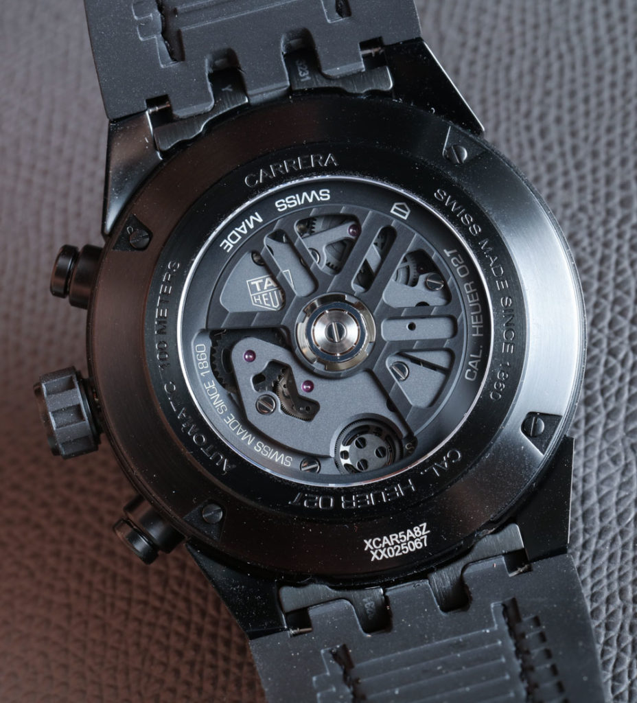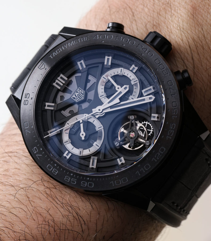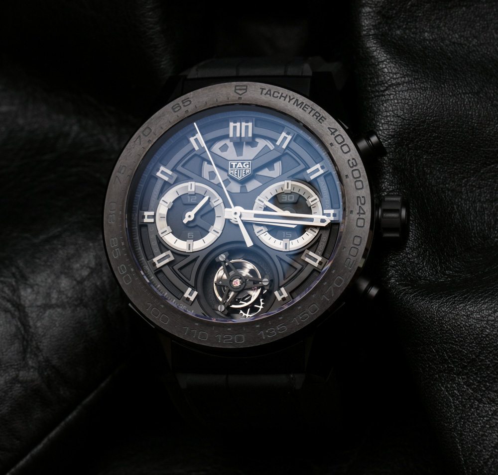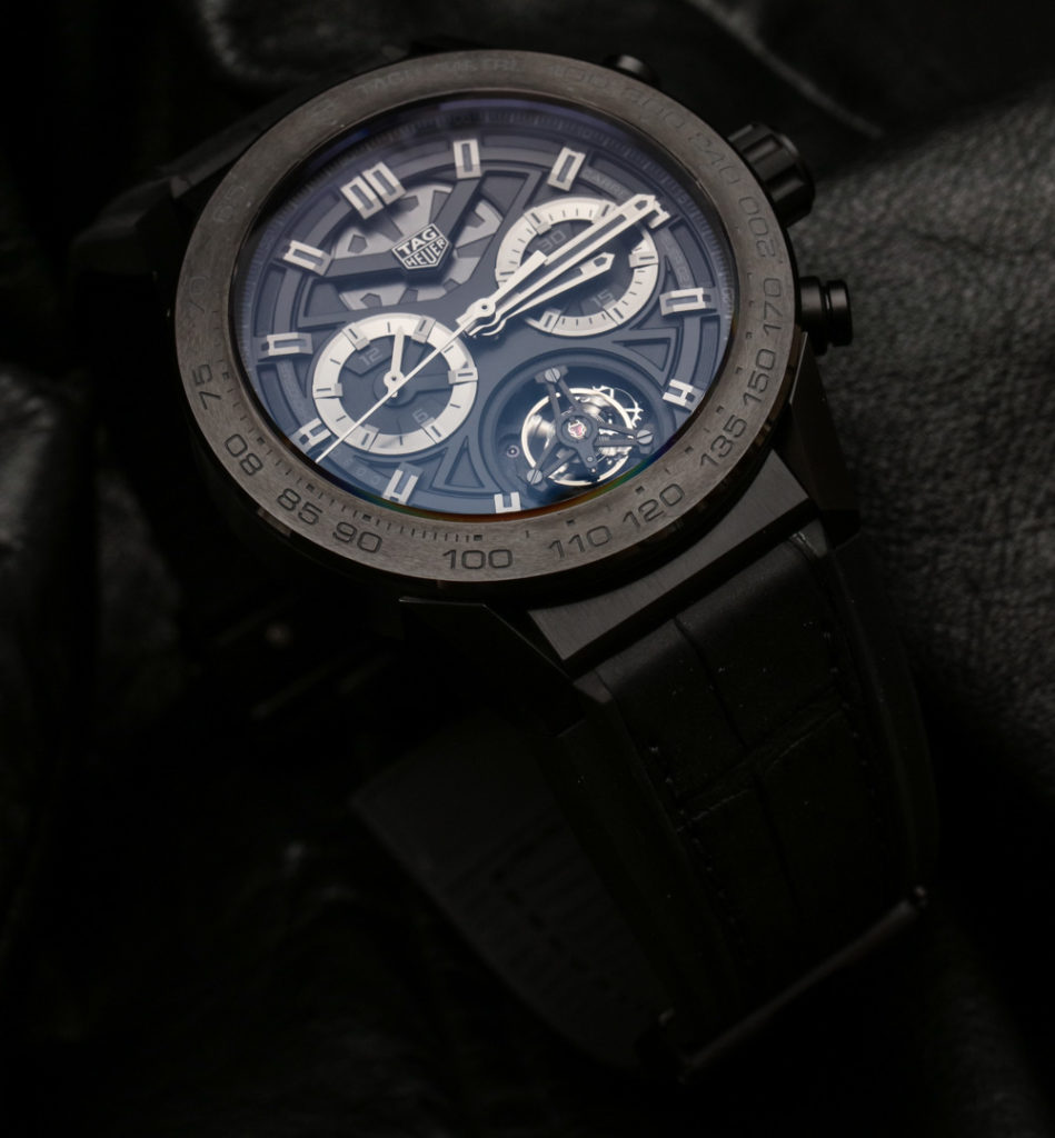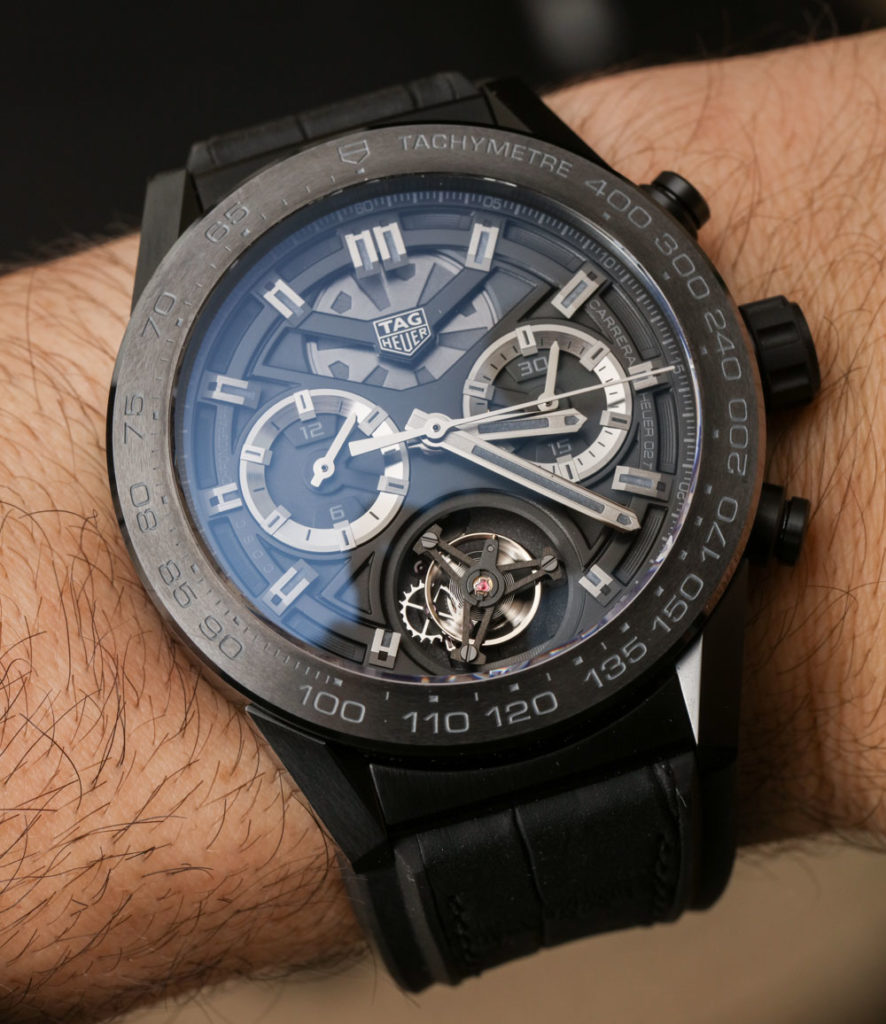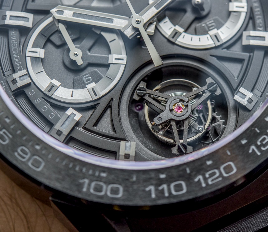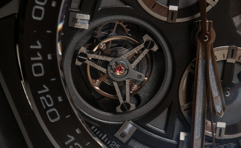 2012 年,他們推出了MikrotourbillonS,然后,就在最近的 2014 年,TAG Heuer 發布了Monaco V4 Tourbillon(在這里動手)?!捌寗印辈⒃陧敳堪惭b橋板,Monaco V4 的陀飛輪以不同的方式設計,但它的價格也約為 170,000 美元。話雖如此,我應該指出,Heuer-02T 陀飛輪的設計靈感來自摩納哥 V4 陀飛輪的構造。TAG Heuer Carrera Heuer-02T Tourbillon 的價格也只是 Monaco Tourbillon 的一小部分,起價約為 16,000 美元。對于長期關注高端手表行業的人來說,這個數字似乎低得不可思議。