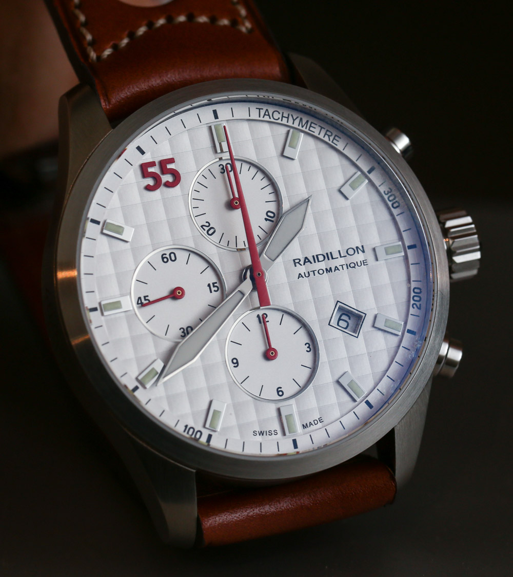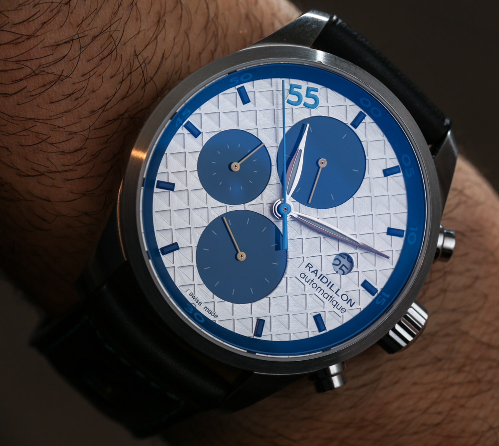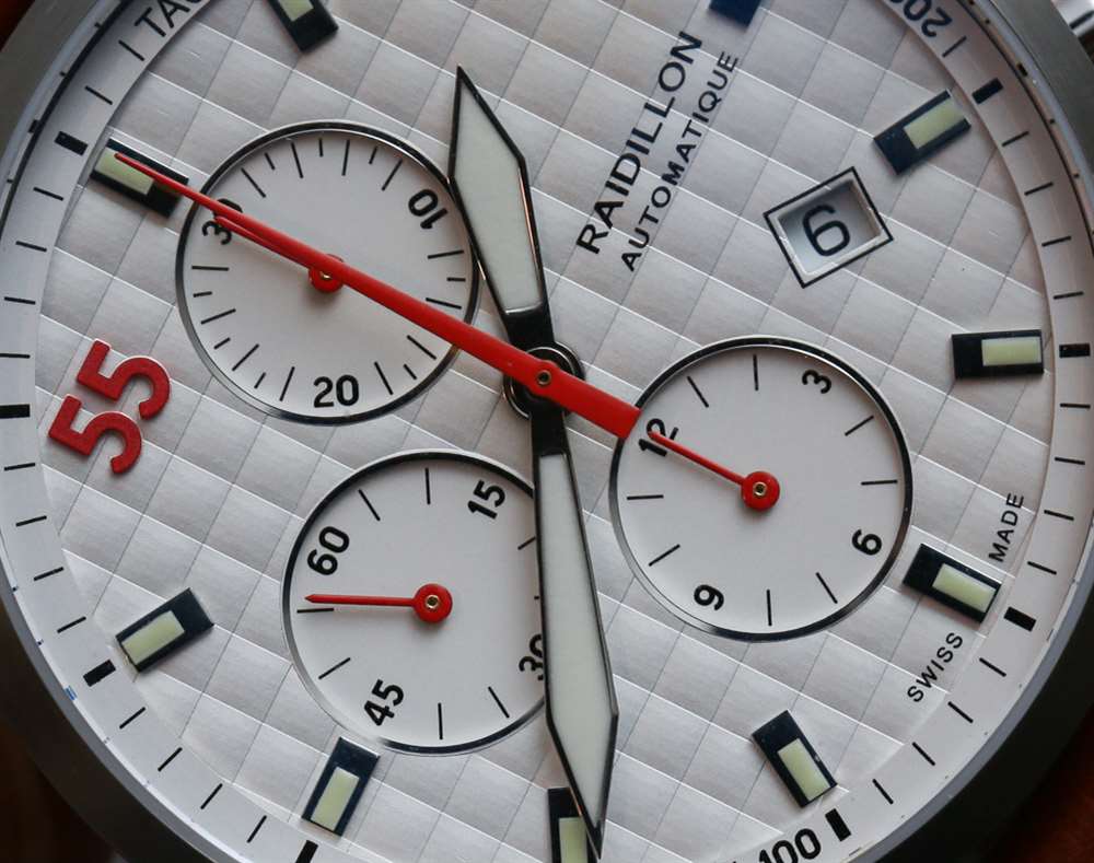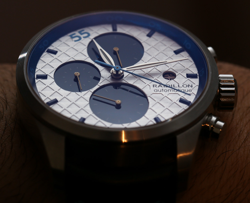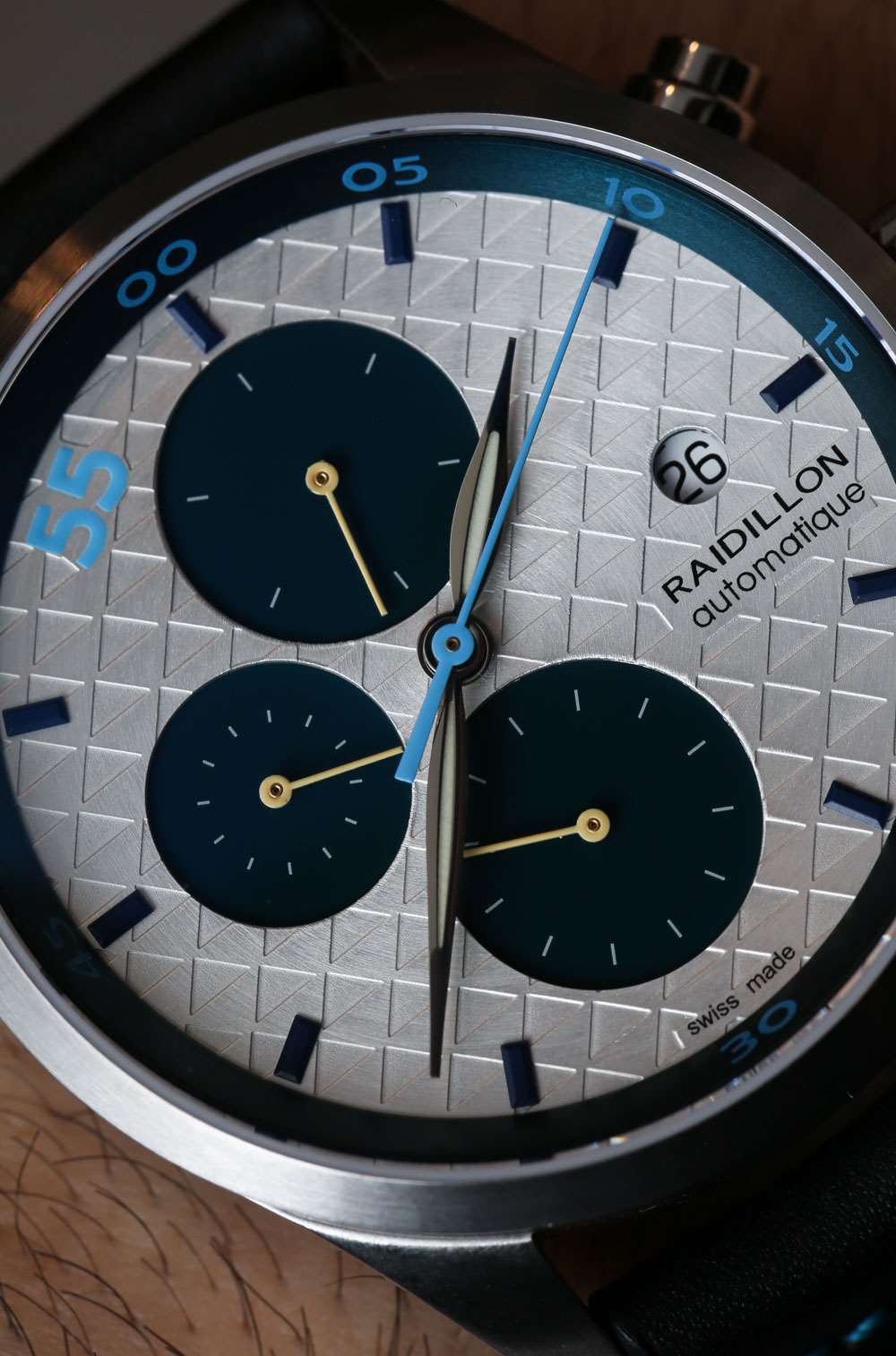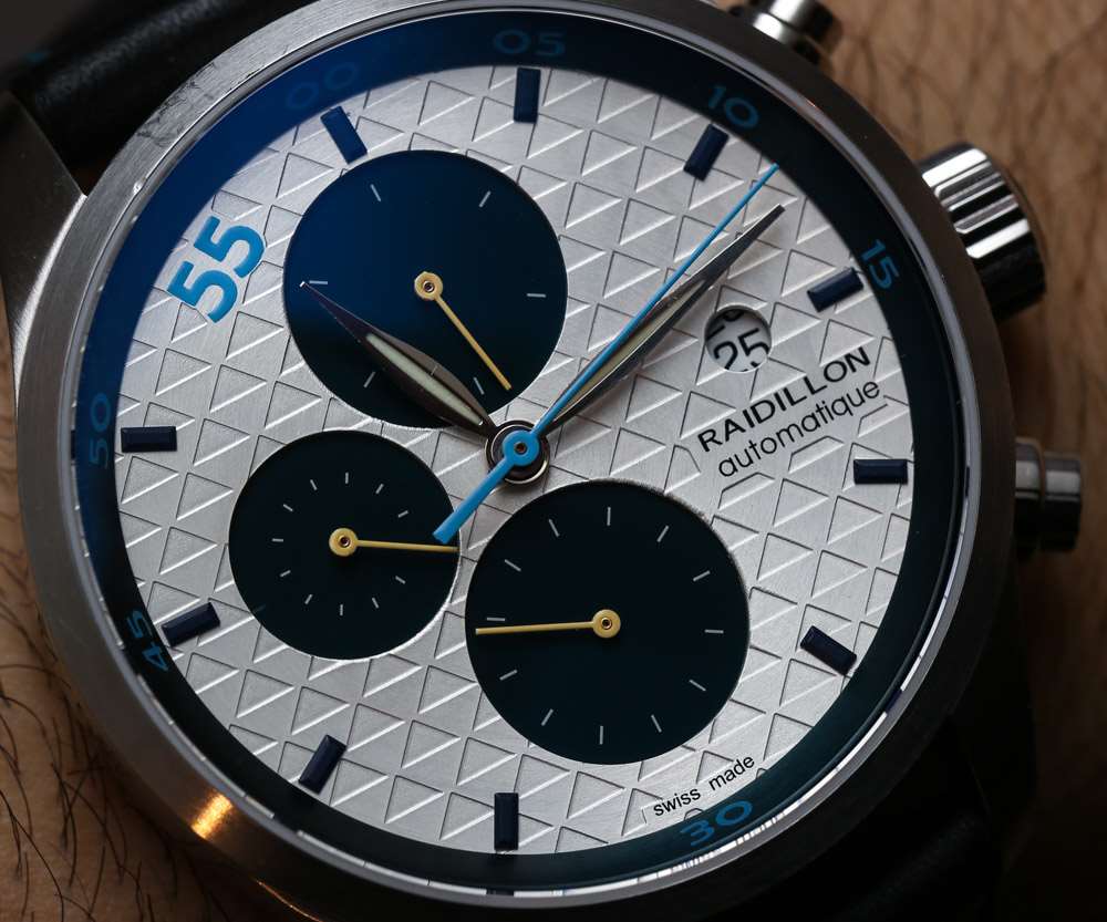 表盤設(shè)計質(zhì)量從非常好到對我的口味不是特別有吸引力。Raidillon 既提供非常經(jīng)典的表盤,也提供一些更具藝術(shù)氣息的表盤。例如,查看我們在 aBlogtoWatch 上介紹的 Raidillon Maya 計時碼表.?我注意到的另一件事是,雖然有些表盤看起來很棒,但另一些則不然。這或多或少取決于 Raidillon 為特定型號選擇的特定顏色、飾面和組合。根據(jù)我親自查看許多 Raidillon Chronograph 型號的能力,我可以說,在購買之前親自查看其中一些手表可能是個好主意,以確保表盤看起來和在線營銷中一樣好圖片。我認(rèn)為,這里的兩款手表(或多或少代表了設(shè)計的經(jīng)典和現(xiàn)代一面)都具有出色的易讀性。然而,一個問題是其中一款手表的圓形日期窗口感覺有點(diǎn)太小而且看起來不那么優(yōu)雅。
