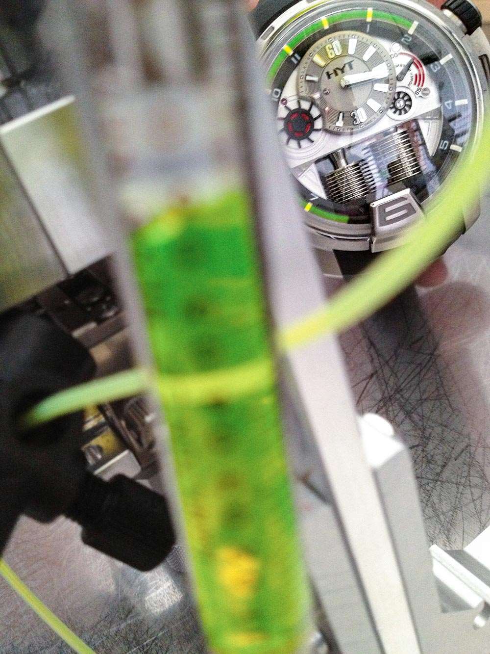 Preciflex 的成立是為了開發(fā)和生產(chǎn)目前僅用于 HYT 手表的技術(shù)。到目前為止,這項(xiàng)技術(shù)的大部分是一個(gè)由細(xì)“毛細(xì)管”和波紋管系統(tǒng)組成的復(fù)雜系統(tǒng),用于移動(dòng)液體作為機(jī)械表上指示信息的手段。除了研究和開發(fā)液體指示器技術(shù)(他們稱自己為“液壓機(jī)械鐘表專家”并不是開玩笑),Preciflex 還在用于此應(yīng)用的液體本身上投入了大量研發(fā)。