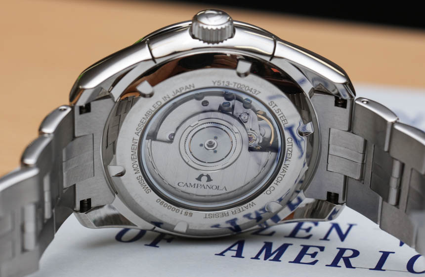 Citizen Campanola Mechanical 系列價格相對合理,使用的機械機芯與您在 Arnold & Son 手表或 La Joux-Perret 作為供應商的大多數其他公司中看到的機械機芯不同。該機芯雖然更簡單(盡管有有用的復雜功能)但很現代,被稱為口徑 Y513。Y513 自動上弦機芯以 4 赫茲 (28,800) 的頻率運行,并具有 42 小時的動力儲存。除時間外,機芯還具有停秒功能(拉出表冠時秒針停止)、12 點鐘下方的大日期指示器以及動力儲存指示器。您可以通過表殼的藍寶石水晶展示底蓋的背面查看機芯。我不得不承認,在“瑞士制造”機芯的轉子上看到日本高端品牌的標志對我來說有點獨特。