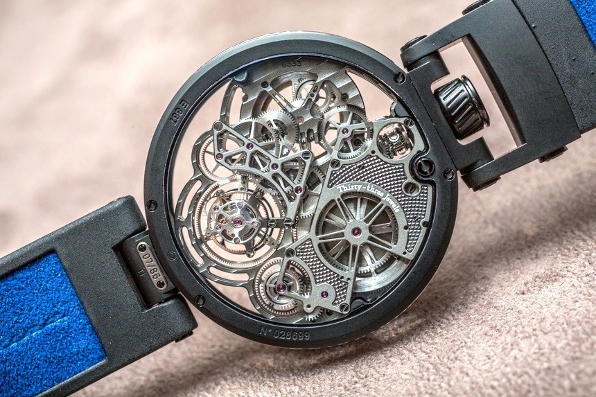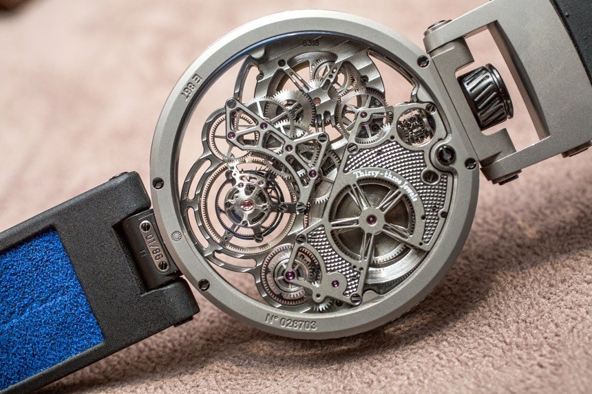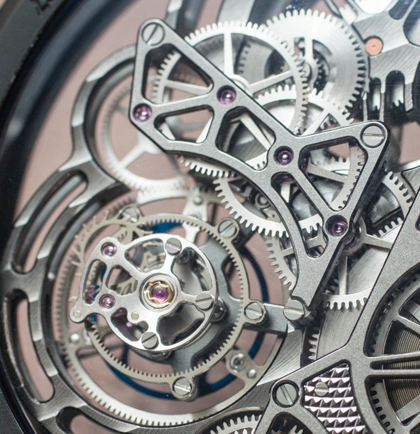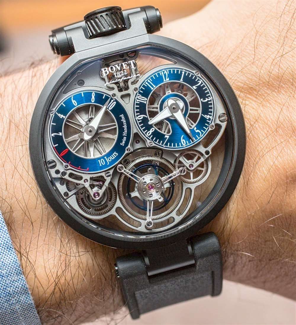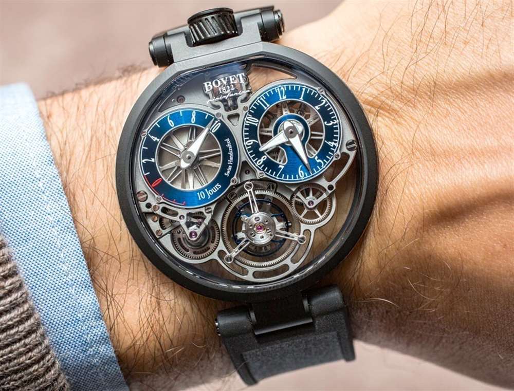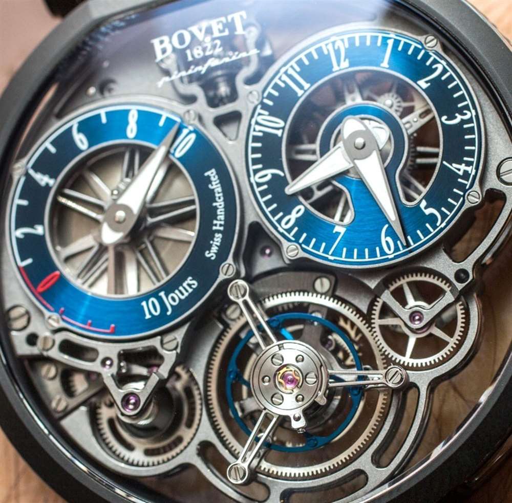 機(jī)芯結(jié)構(gòu)和鏤空是純粹的“高級(jí)鐘表學(xué)”,具有一系列精美而現(xiàn)代的裝飾細(xì)節(jié)和修飾。我知道 Bovet 時(shí)計(jì)的設(shè)計(jì)并不適合所有人,但我仍然相信大多數(shù)鐘表愛(ài)好者都能輕松地支持這些手表的技術(shù)和技巧。此外,如此顯眼的大型飛行陀飛輪腕表以及涂有明亮 SuperLumiNova 夜光涂層的指針(請(qǐng)注意,在這些原型型號(hào)上,指針是手繪的,因此流明看起來(lái)不均勻)的頻率有多高。