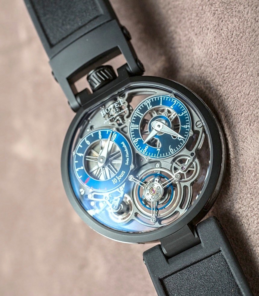 播威 Pininfarina OttantaSei 10-Day Tourbillon 10-Day Tourbillon 腕表雖然是一款奢華的陀飛輪腕表,但它的指針和指示器非常清晰易讀,戴在手腕上感覺(jué)非常輕盈。橡膠表帶有漂亮的深藍(lán)色 Alcantara 襯里,整體佩戴非常舒適 – 如果您的手腕真的很大,考慮到較大的表殼的佩戴方式,佩戴起來(lái)會(huì)更加舒適。