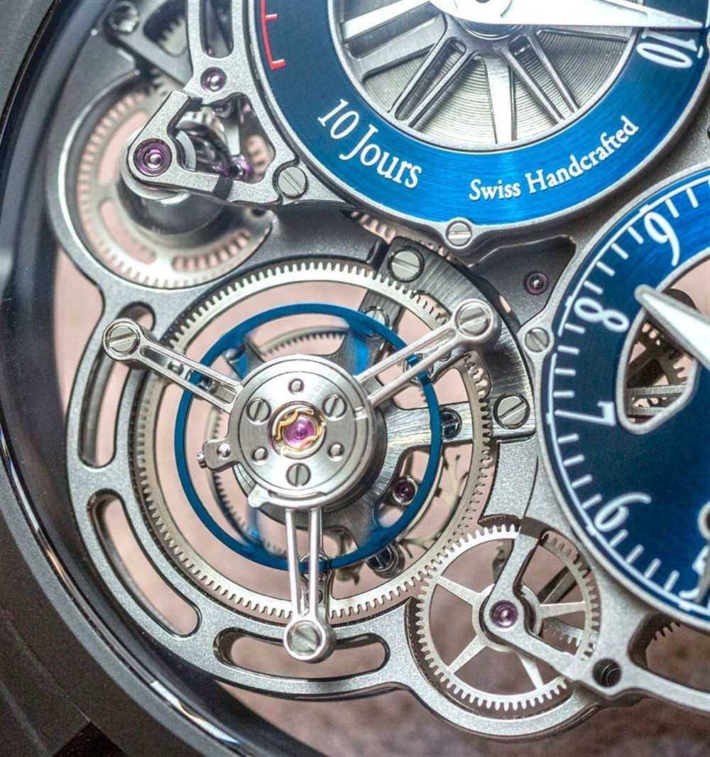 Bovet Pininfarina OttantaSei 10-Day Tourbillon 內(nèi)部是一款名為 17BM03MM 機(jī)芯的新機(jī)芯。手動(dòng)上鏈,機(jī)芯以每小時(shí) 18,000 次(2.5 赫茲)的速度運(yùn)轉(zhuǎn),并在一個(gè)發(fā)條盒中提供長(zhǎng)達(dá) 10 天的動(dòng)力儲(chǔ)存。查看和操作機(jī)芯是真正的美。Bovet 決定通過(guò)在輔助表盤(pán)、大直徑陀飛輪(兼作小秒針指示器)和動(dòng)力儲(chǔ)存指示器上提供時(shí)間,使事情盡可能簡(jiǎn)單和優(yōu)雅。廣告留言廣告信息結(jié)束